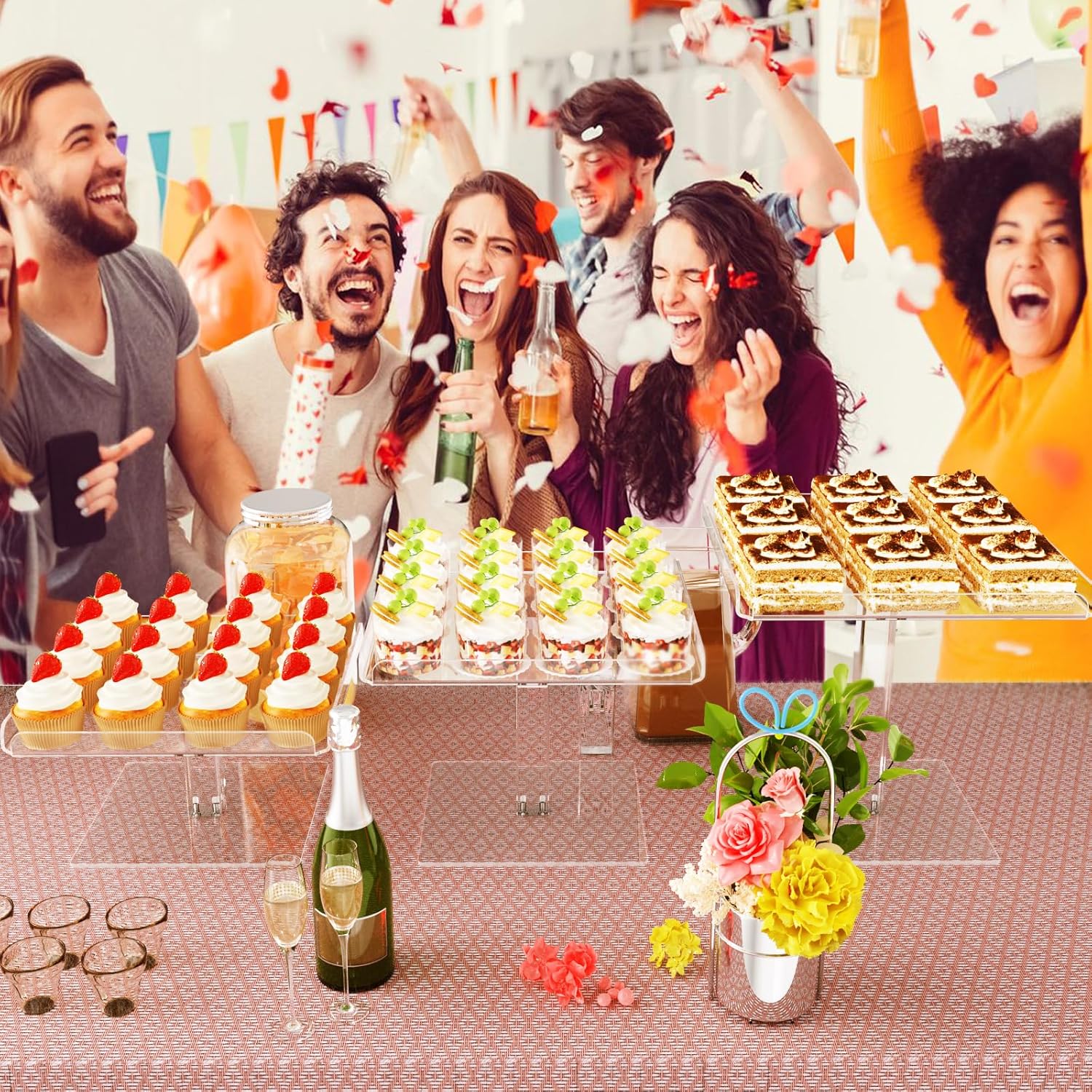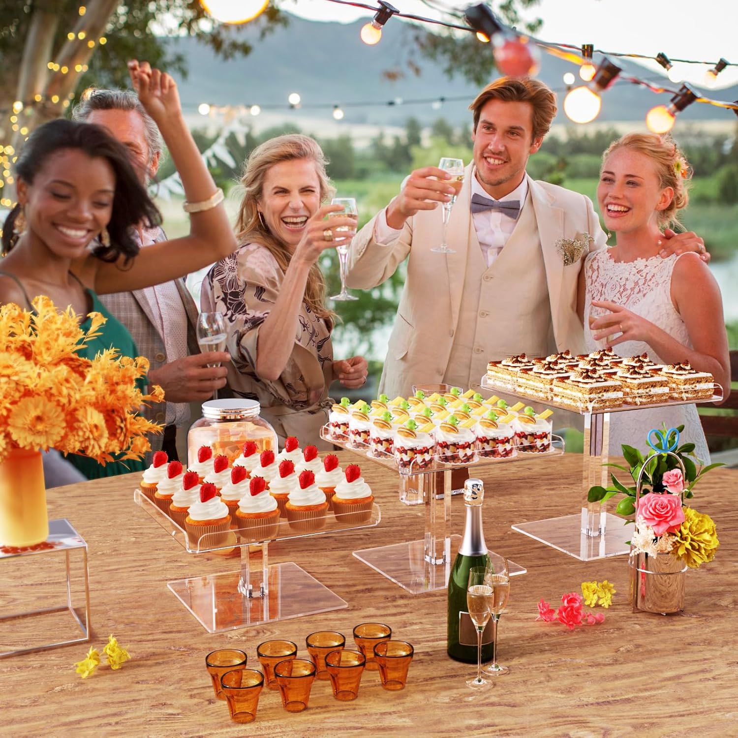 - Food-Safe & Stylish: Crafted from high-quality, food-safe, and BPA-free acrylic, this versatile and stylish dessert table display set is perfect for various events. With a capacity to hold up to 48 standard 2-inch diameter cupcakes across three tiers, it ensures an elegant and impressive presentation.