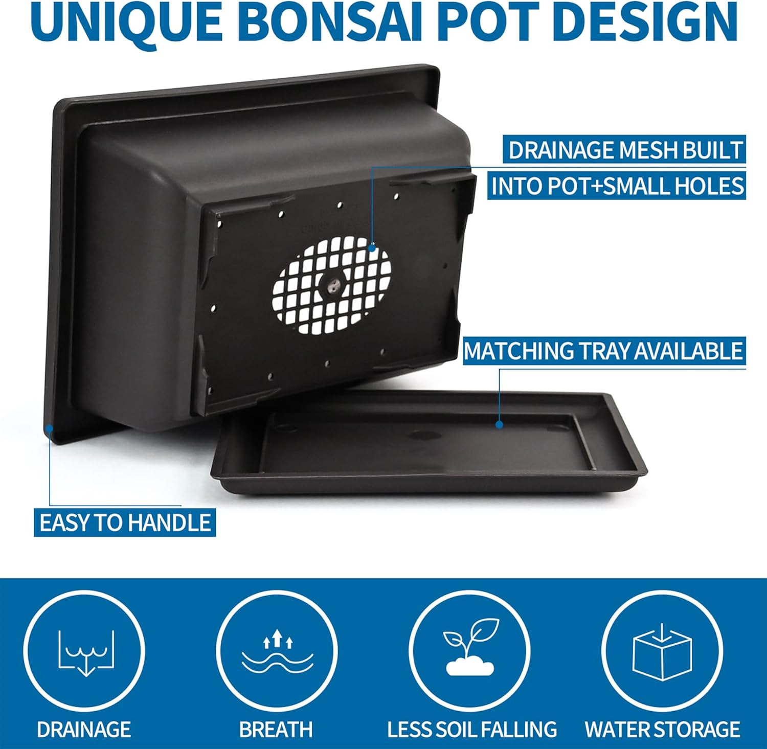 - KIT INCLUDES: 5 types of bonsai tree seeds, 5 plastic pots with drip trays, 5 soil discs, 5 plastic writable plant markers, 1 bonsai pruner, a mini tweezer, a small water bottle and a gardening guide.