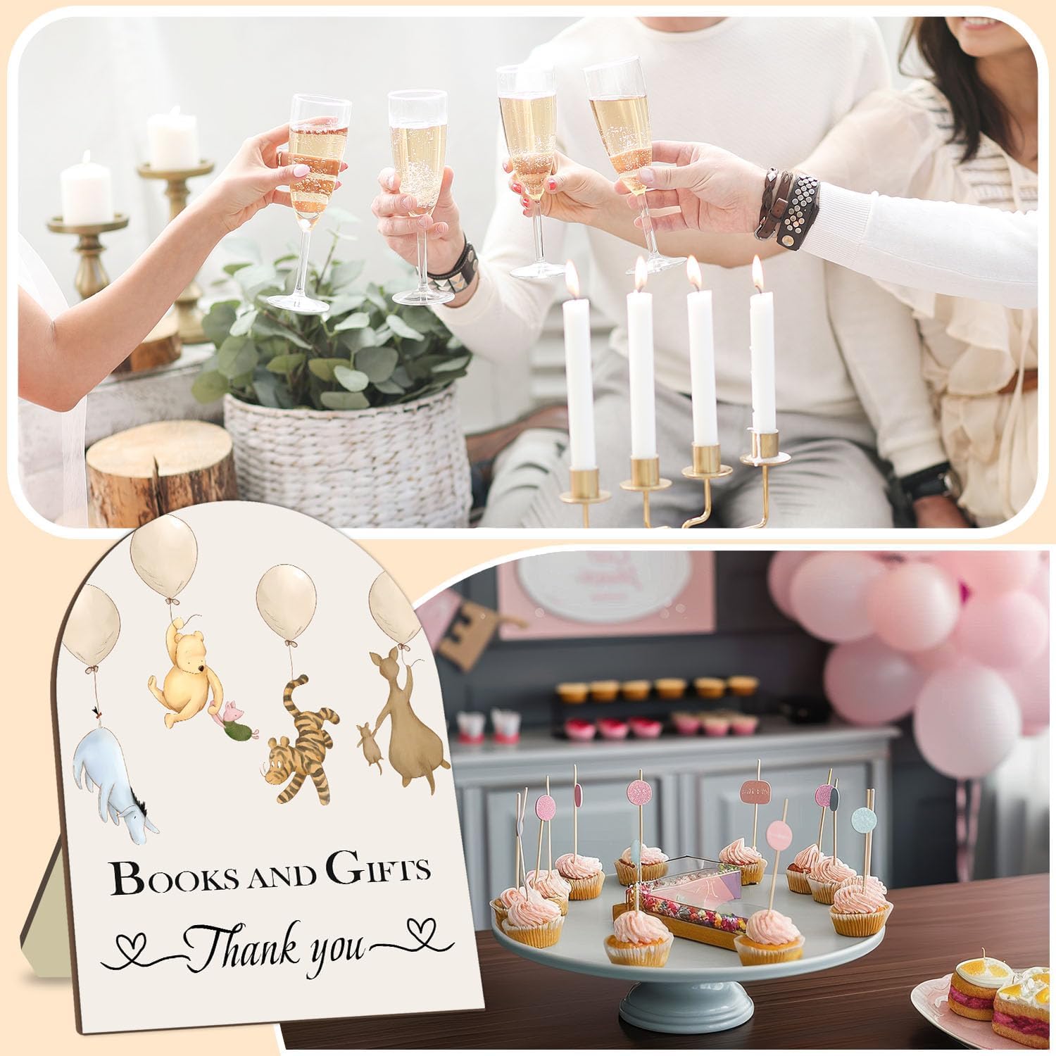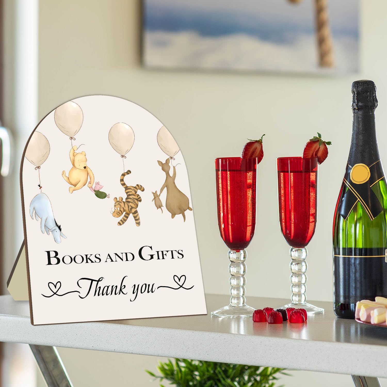 Winnie Decor Baby Shower Welcome Sign - Classic Pooh Books & Gifts, Bridal & Baby Shower Wooden Sign, 8 * 10IN
