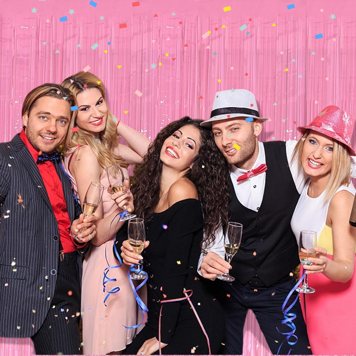 20 Pack Party Backdrop Decorations Pink Tinsel Curtain Party Backdrop Foil Fringe Birthday Decorations Photo Booth Streamer Backdrop Pink Theme Bachelorette Graduation Party Decorations