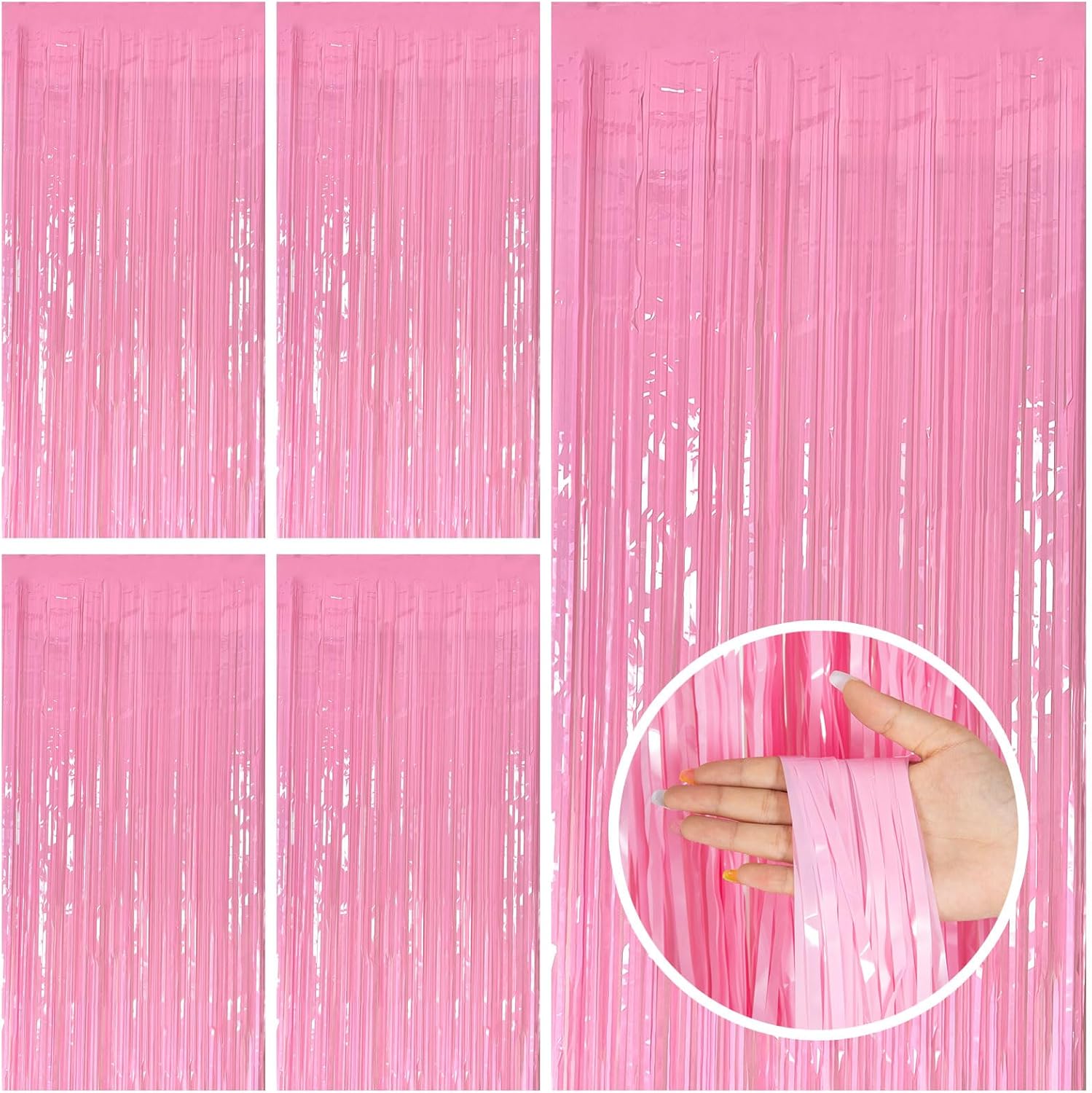 5 Pack Pink Tinsel Curtain Foil Fringe Birthday Graduation Party Decorations Photo Booth Streamer Backdrop