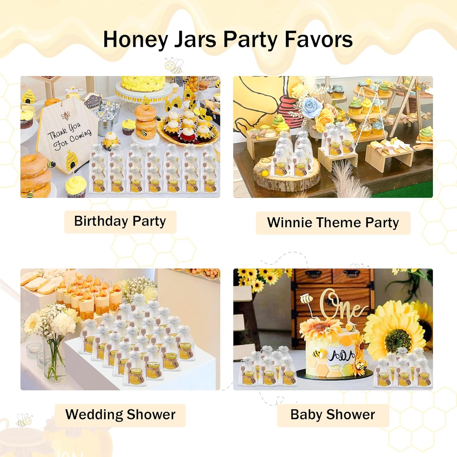 - Elegant Small Honey Jars for Party Favors: Like golden drops of sunshine, our mini honey jars with dippers become sweet keepsakes for weddings, baby showers, and more. The 1.5 oz glass honey jars with lids add a charming touch to heartfelt celebrations.