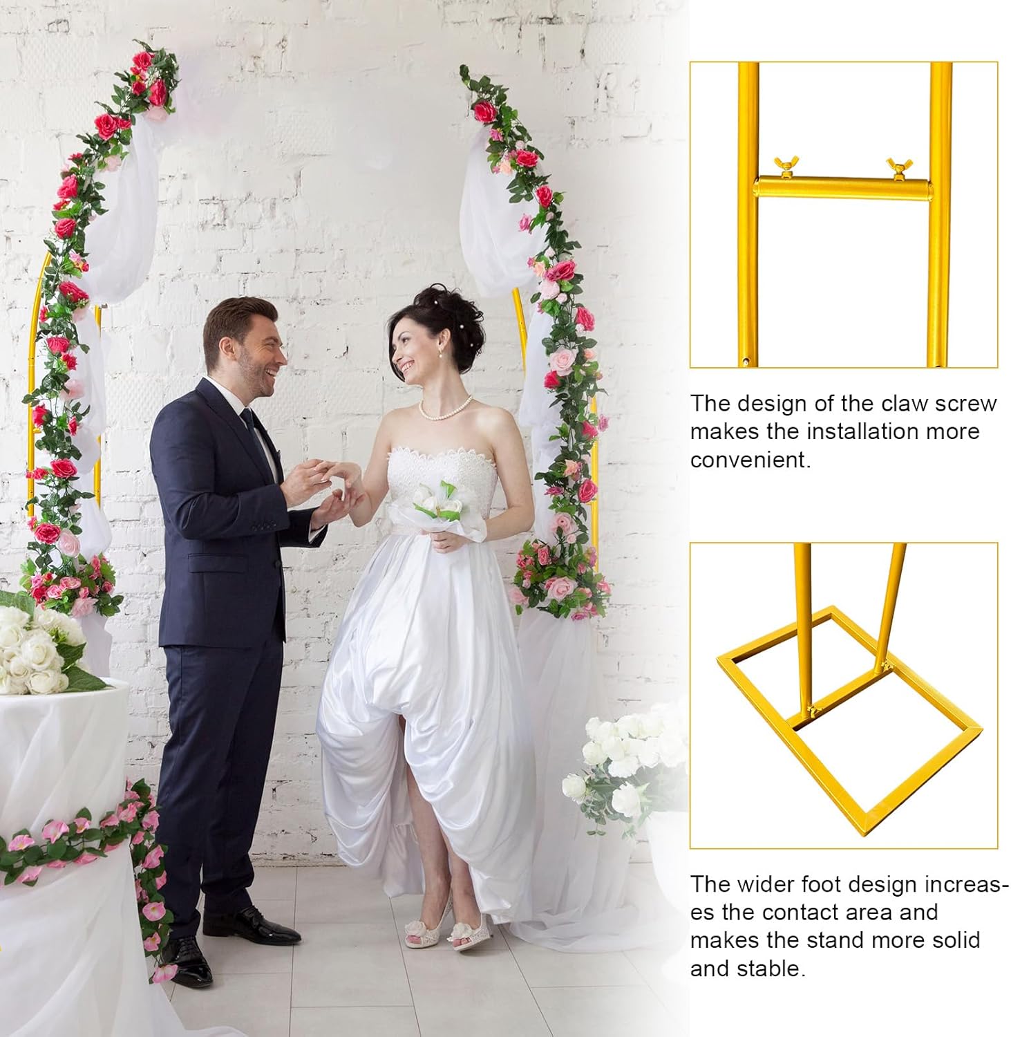 - Unique Design: The gold half-moon Wedding Arch creative wedding backdrop stand with a unique curved top design, consist of two arches of different heights with a semi-open design.