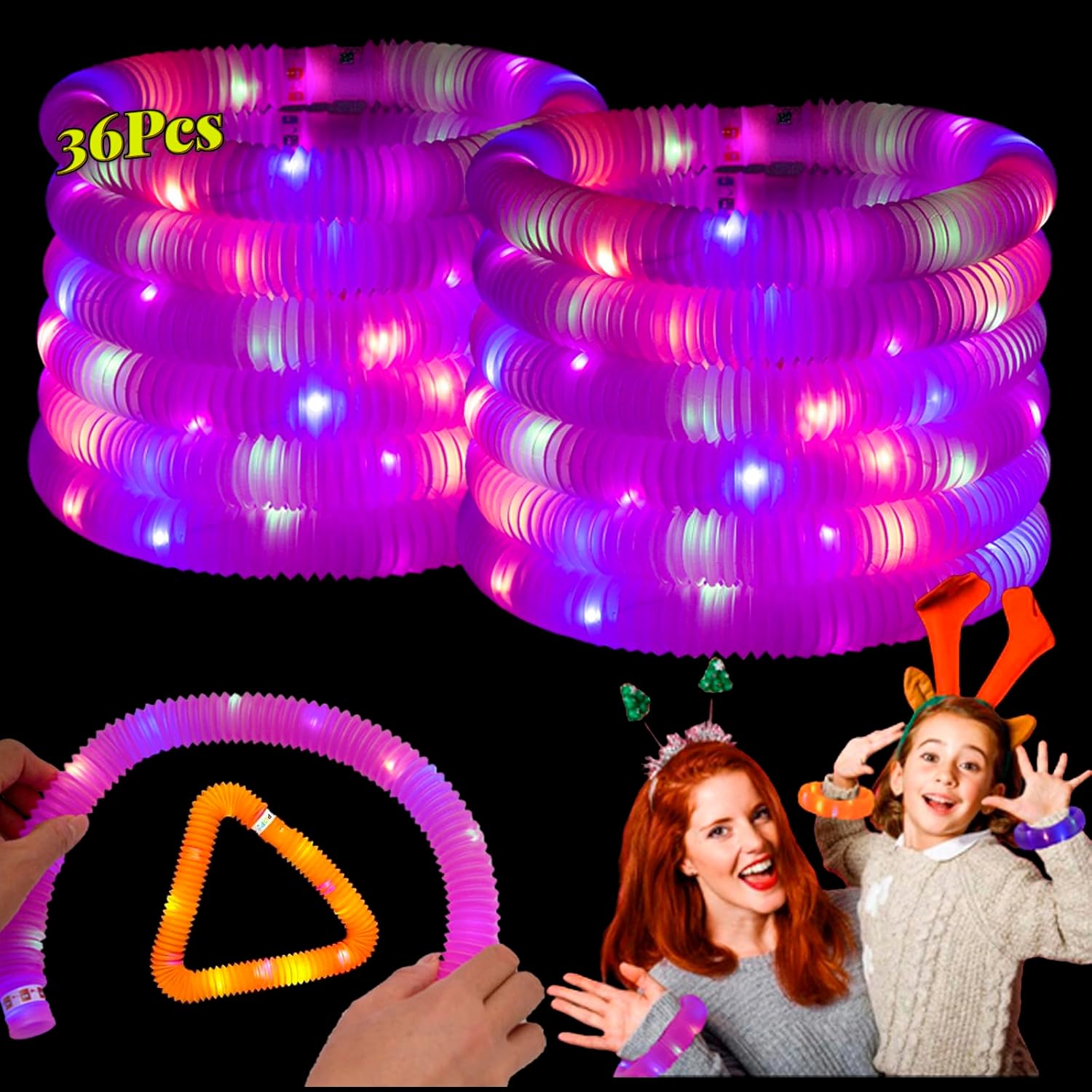 - When you stretch or twist the led pop tubes, it will make a satisfying "pop" sound and special touch, which can help to calm down and relieve anxiety by diverting attention to popping sounds. Nice choice as a playing kids party favors for indoor and outdoor