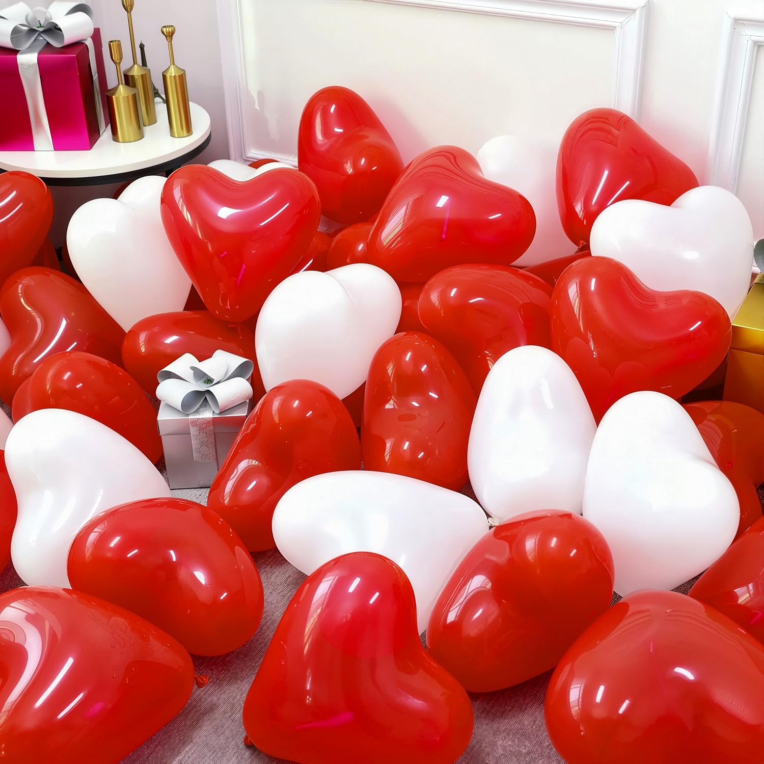 - 【High Quality Material】 Our red and white heart balloons are made of high-quality latex material, not only has eye-catching color, glossy and beautiful shape, but also non-toxic and odourless,stronger and long lasting. Adding a strong sweet breath, spread the love in your party with our romantic valentine balloons decorations!