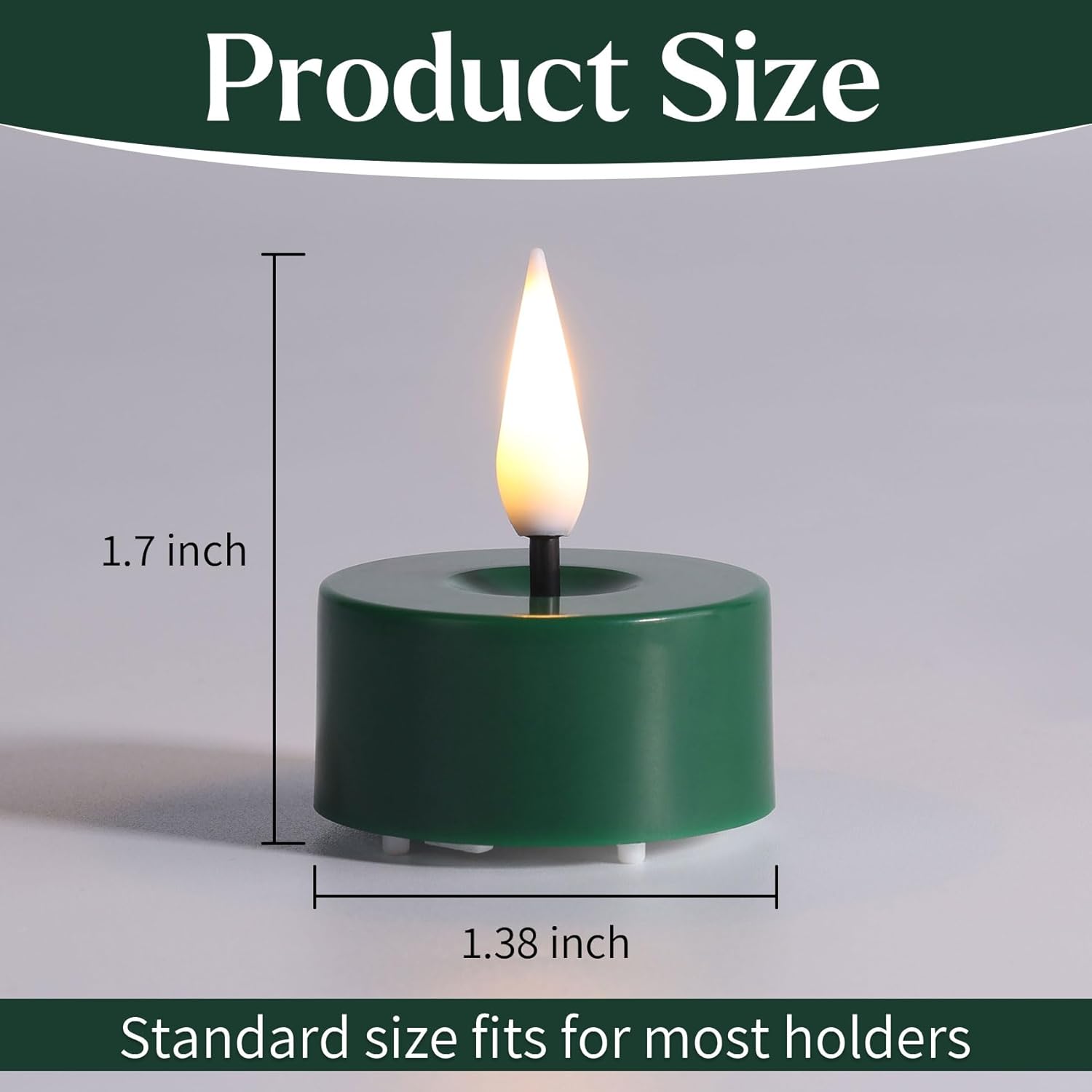 Eywamage Green LED Tealights with Remote Batteries, Flickering Flameless Tea Lights Votive Candles Set of 12