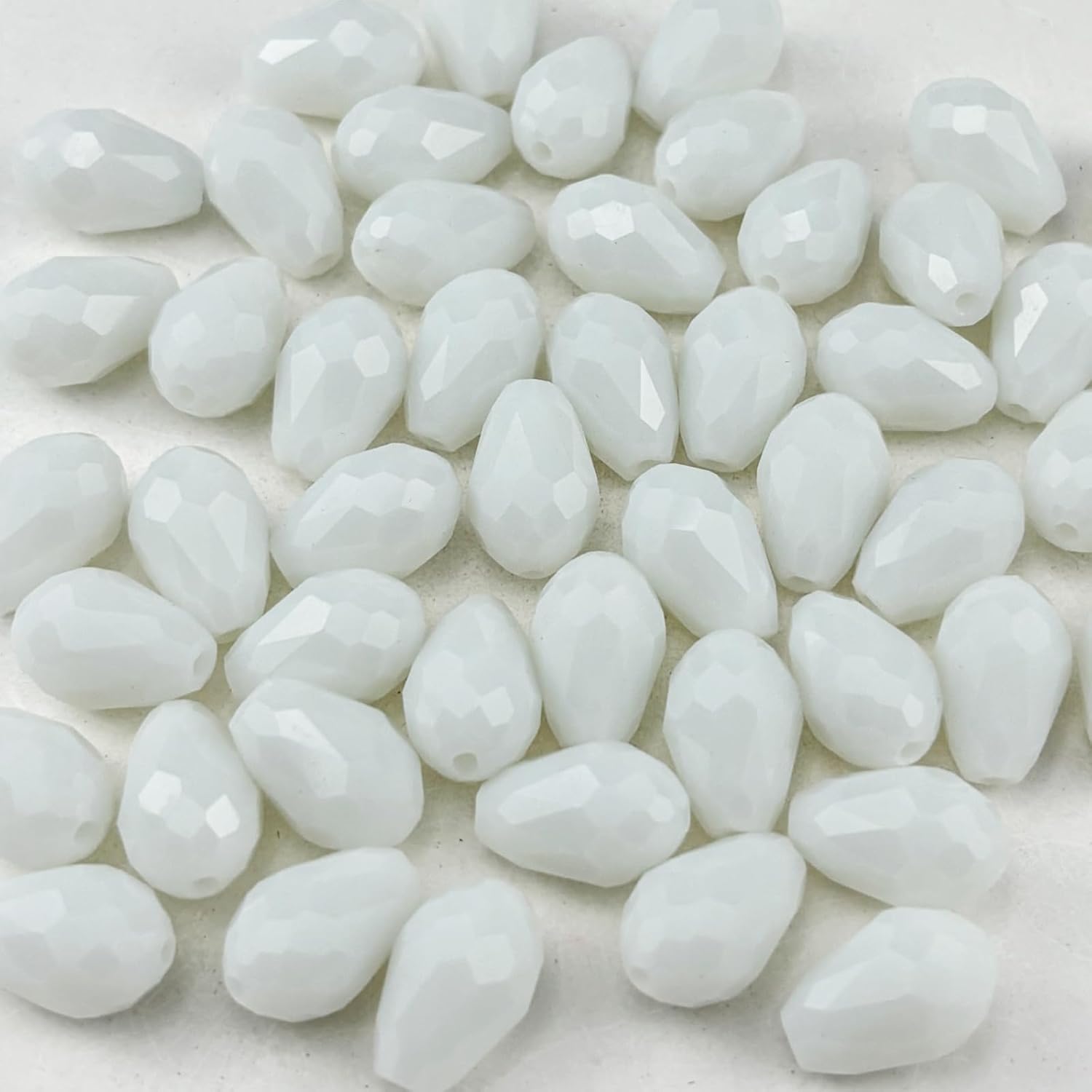 50pcs 10x15mm Teardrop Crystal Glass Beads for Jewelry Making, Faceted Vertical Hole Teardrop Glass Spacer Beads for Wind Chimes Bracelet Earring Necklace DIY Craft(White)