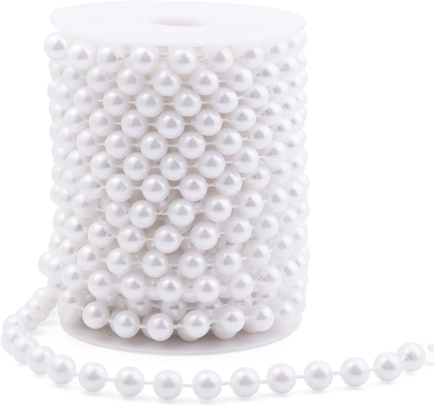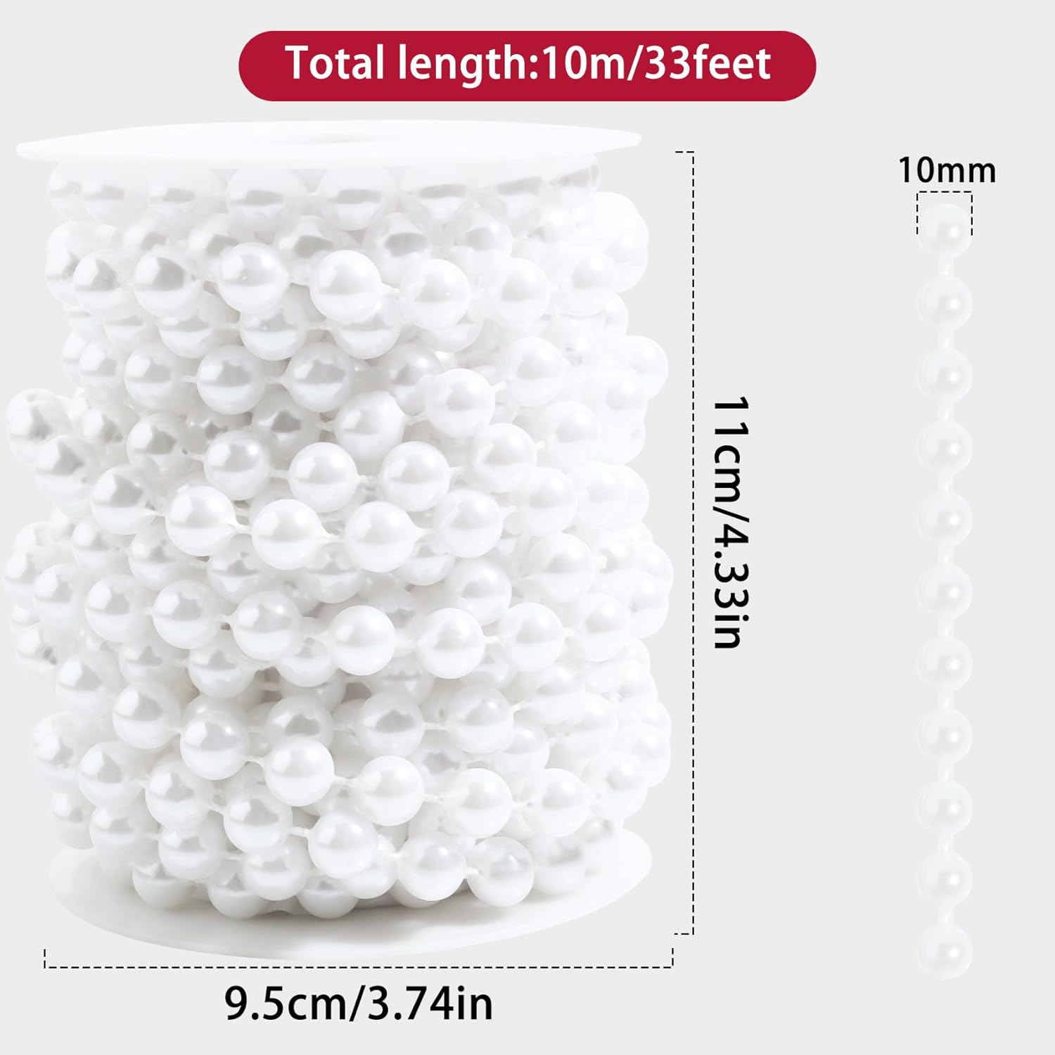 - Size: each roll of pearl chain has a total length of 33 feet/10 metres. The diameter of artificial pearls is 10mm. Please check the size before purchasing