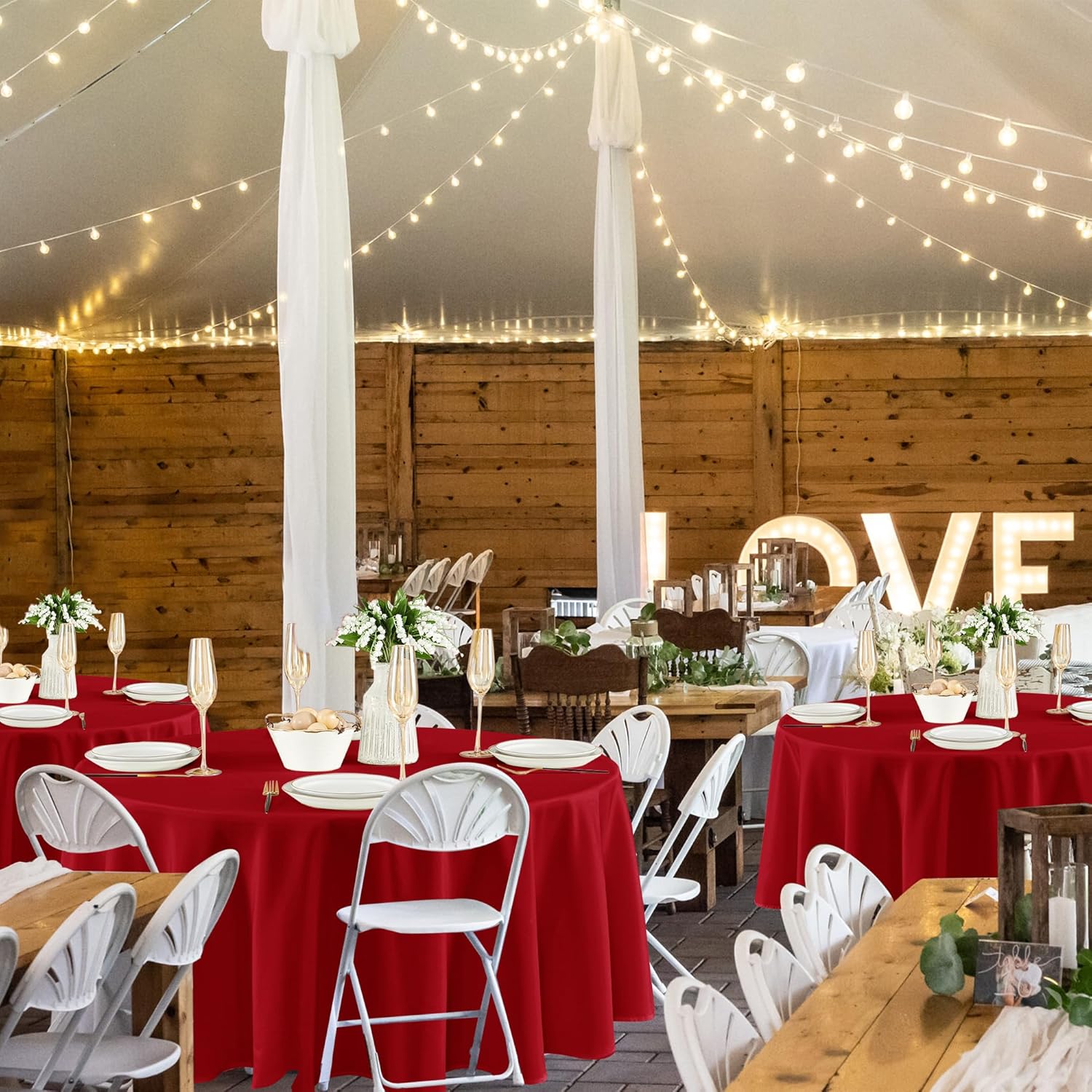 Fitable 8 Pack Round Tablecloths: Stain Resistant Wrinkle Free Circle Table Clothes, Washable Reusable Polyester Table Covers for Wedding Christmas Party Birthday Banquet Reception(Red, 120 Inch)