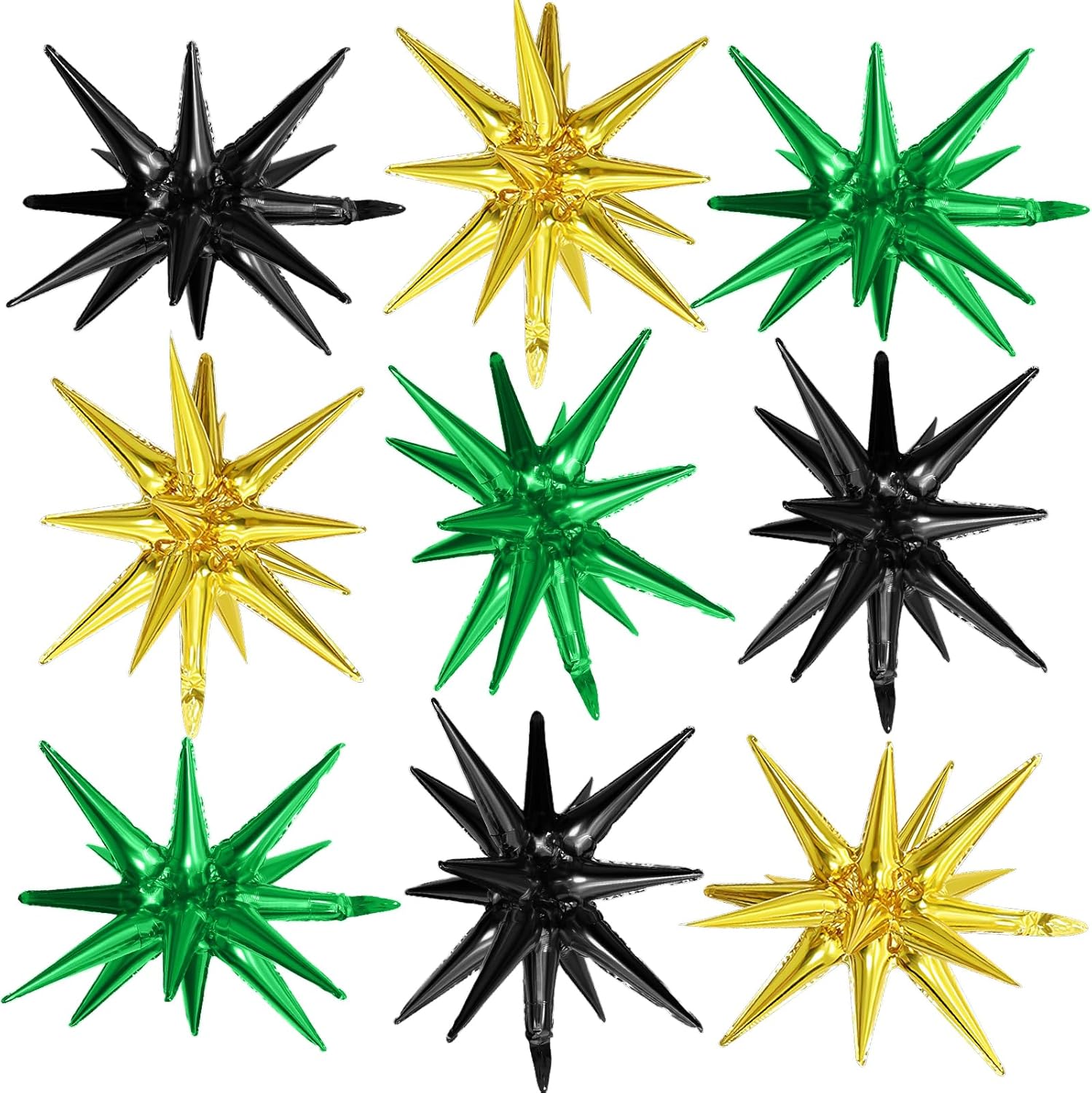 - Black Green Gold Star Balloons Set:Package include 9pcs 22Inch explosion star balloons(black x 3,green x 3,gold x 3).Large enough to help you better decorate your party.
