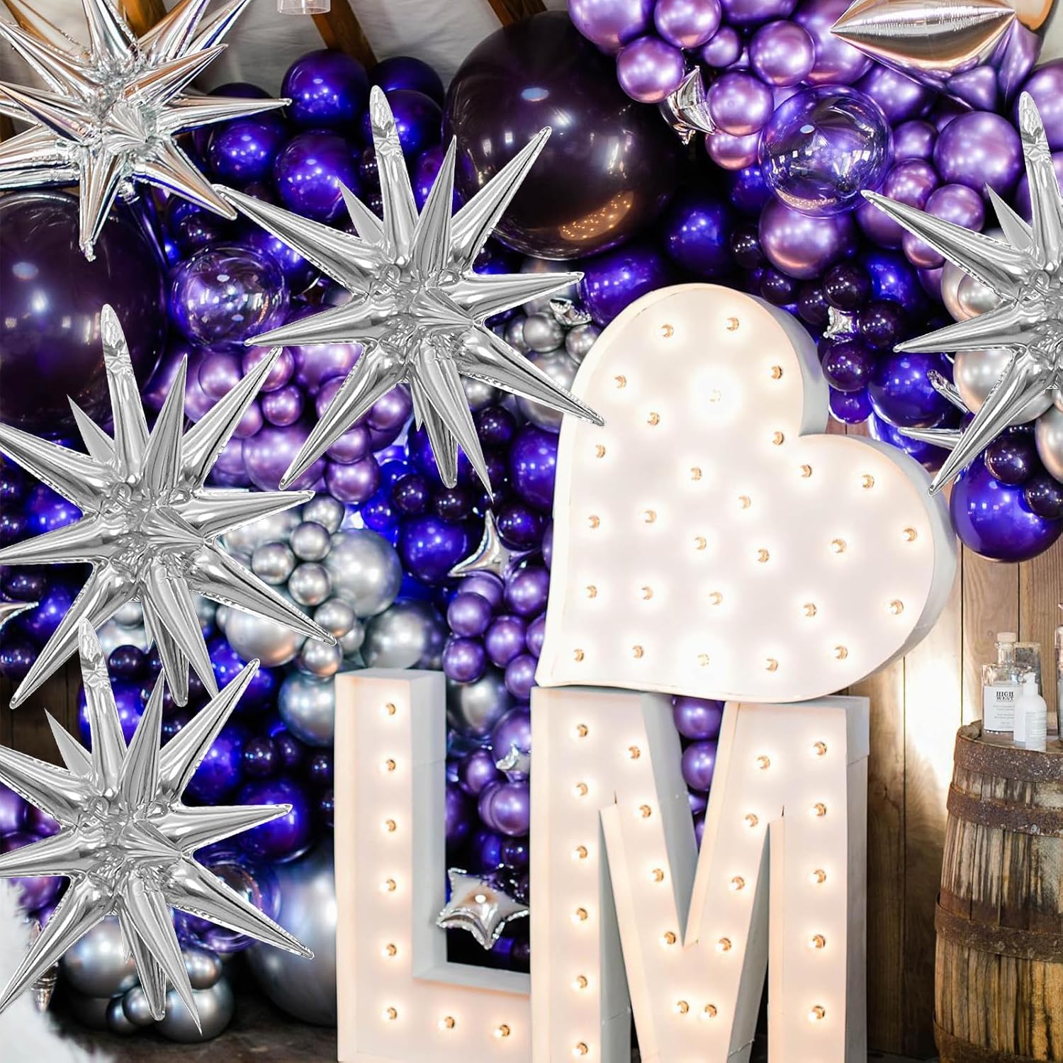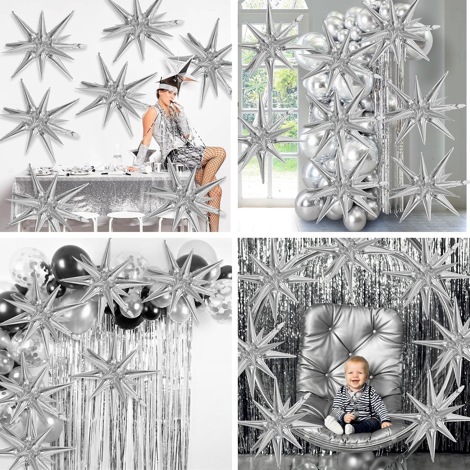 - Silver Star Balloons Set:Package include 9pcs 22Inch silver explosion star balloons.Large enough to help you better decorate your party.