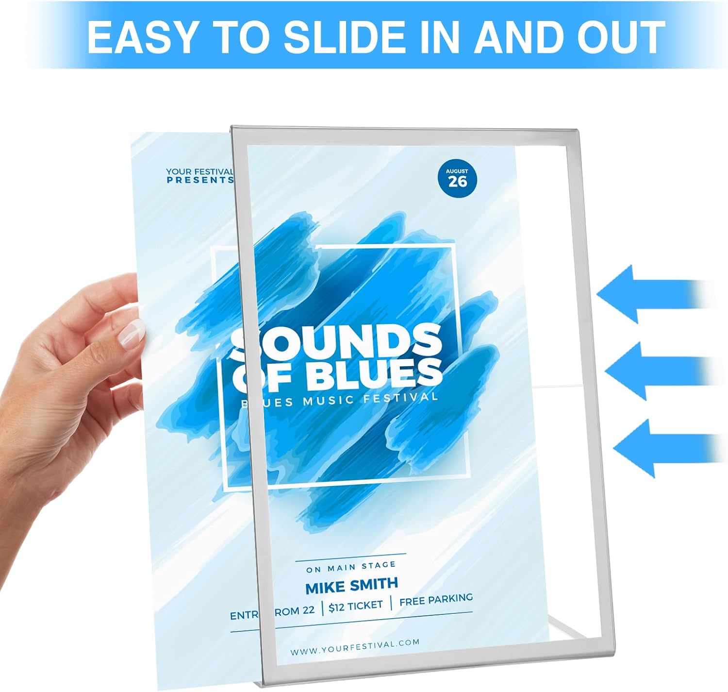 - Wide Range of Application: EHWINE Premium acrylic silver photo Frame is suitable for displaying photos, pictures, brochures, menus, artwork, advertisements, etc. on wedding tables, offices, stores, schools and anywhere else