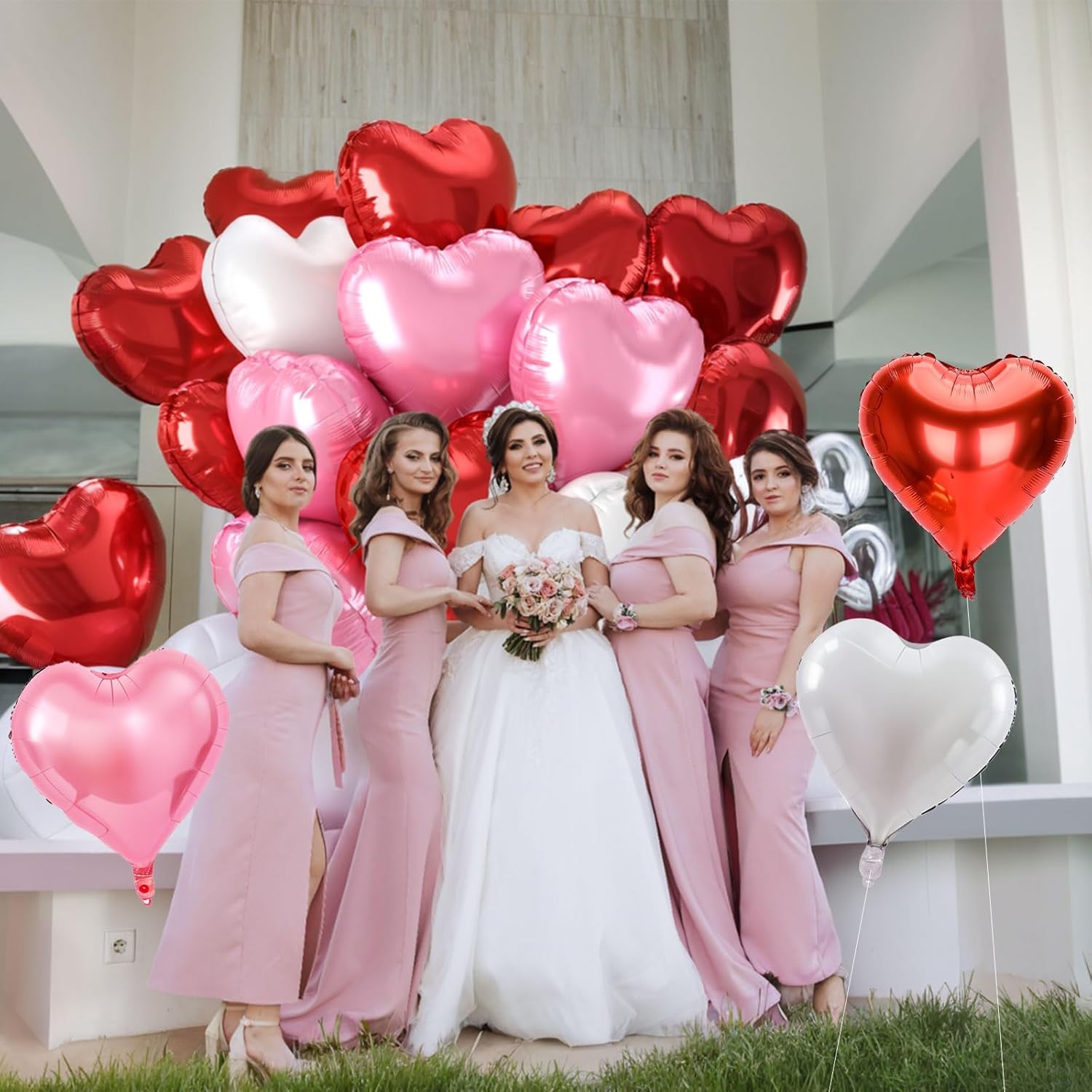- Red Pink White Heart Balloons:These 18 inches heart shaped balloons includes 4* red heart balloons, 4* pink heart balloons, 4* white heart balloons, 1* ribbon, 1*straw, adding romance and warmth to your celebration. These large heart balloons will be the highlight of your party decorations, creating an atmosphere of love for everyone.