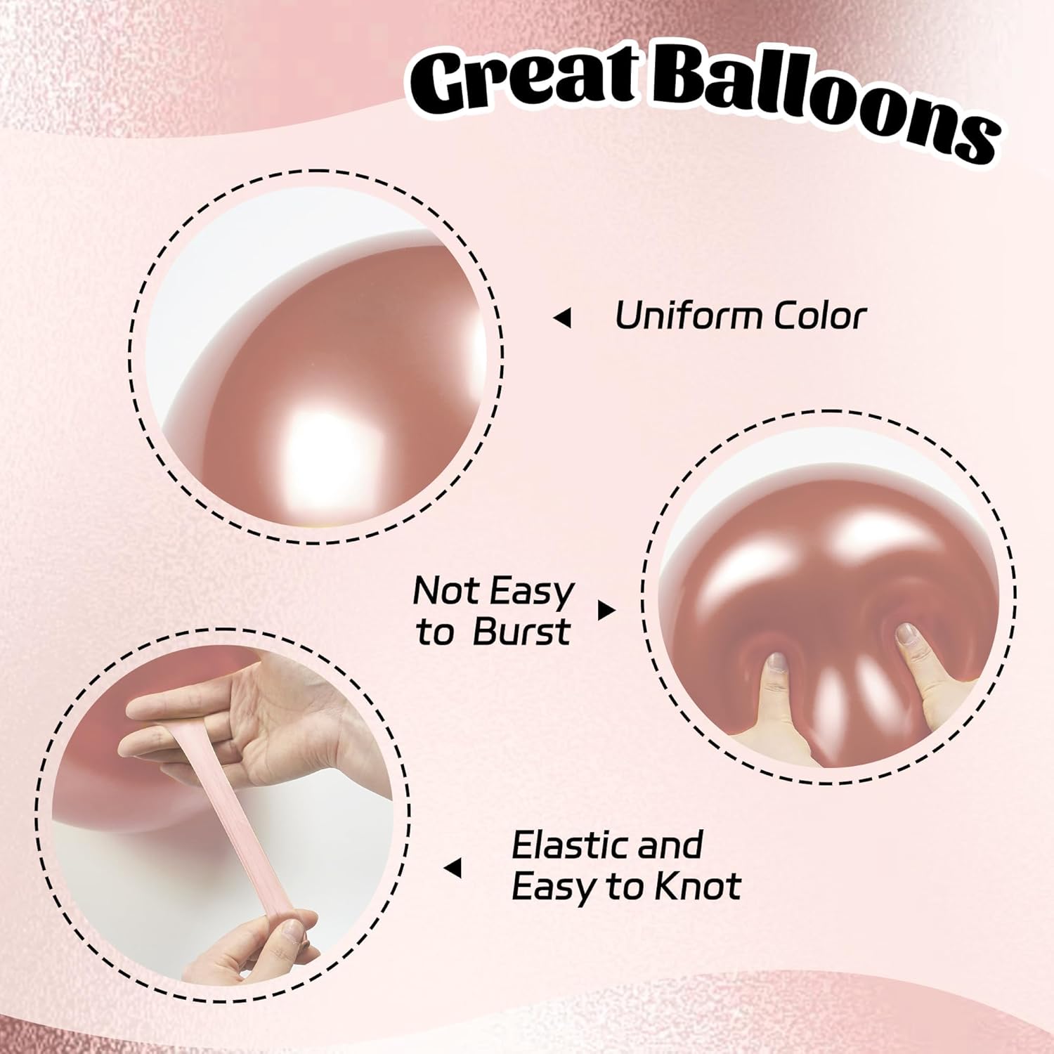 - Great Balloons: The black and rose gold balloons are made of great latex, it offers great elasticity, thick and sturdy