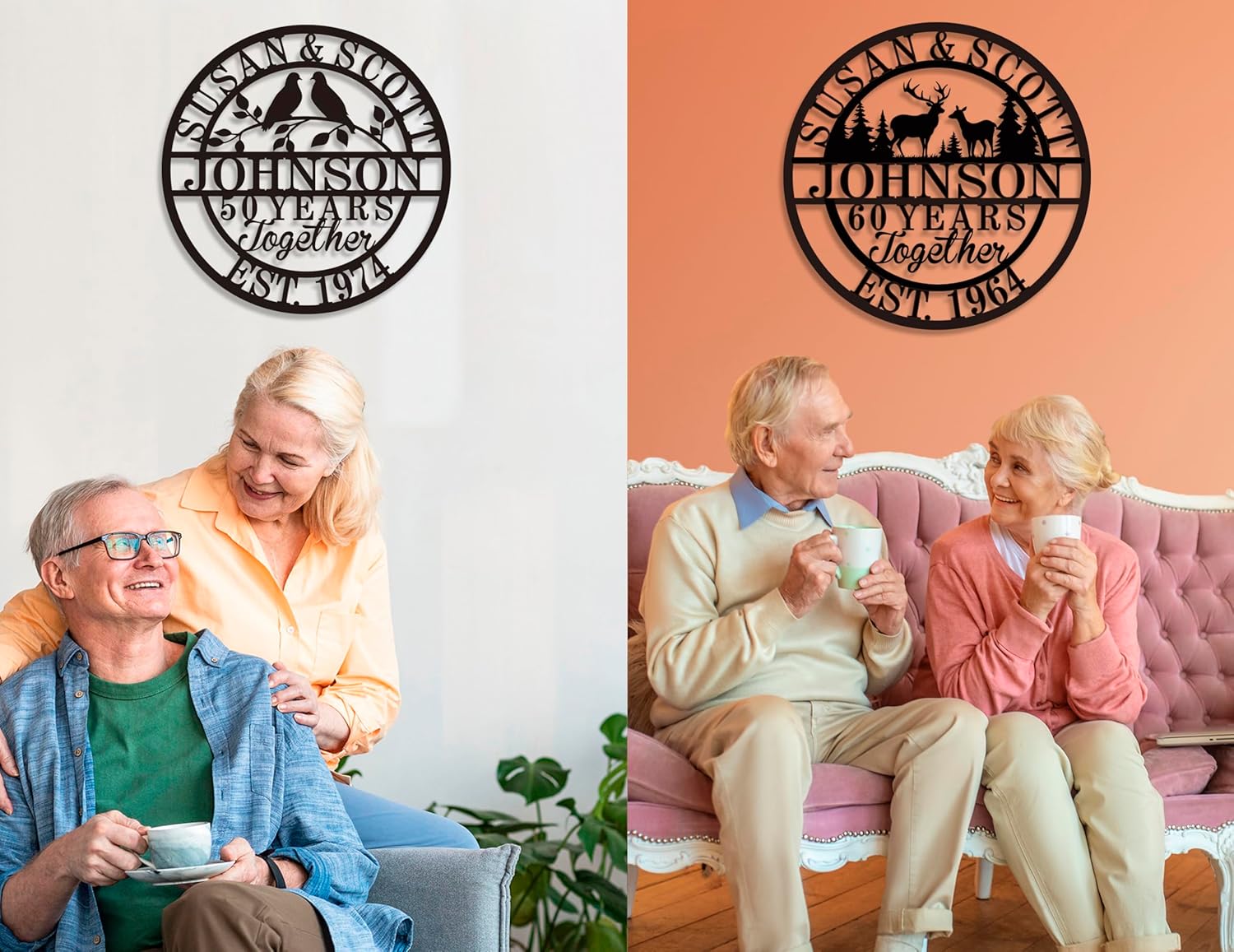Personalized Christmas Gifts 2025, Custom 50th/40th/60th/70th/30th/1-99 Years Wedding Anniversary Sign Gifts for Couples Parents, Custom Metal Monogram Sign Personalized Family Name Signs