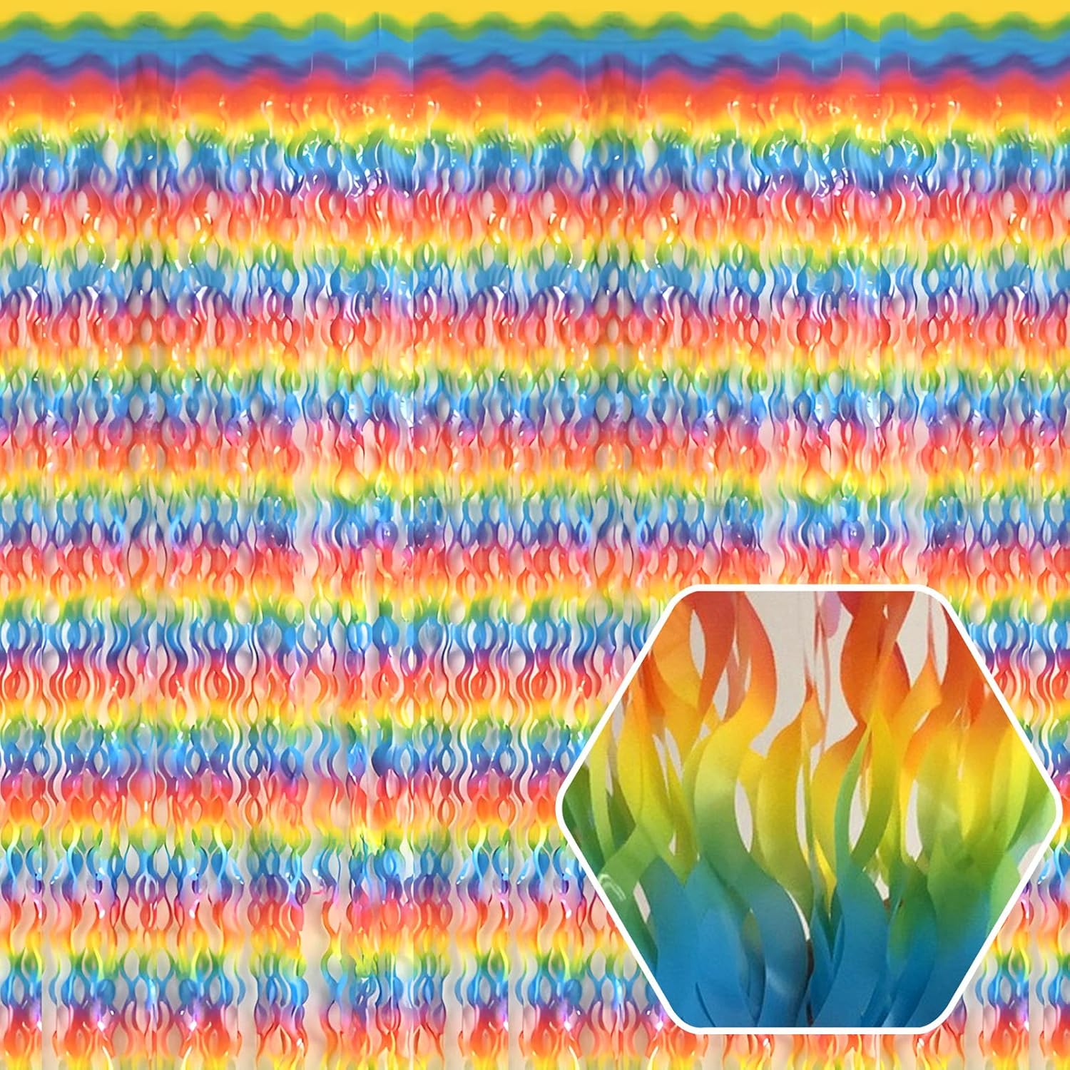 4 Pack Dark Rainbow Wave Foil Fringe Curtain Backdrop, 3.28Ft x 8.2Ft Metallic Tinsel Foil Fringe Streamer Curtains for Photo Booth, Mother's Day, Easter, Birthday, Wedding Party Decoration