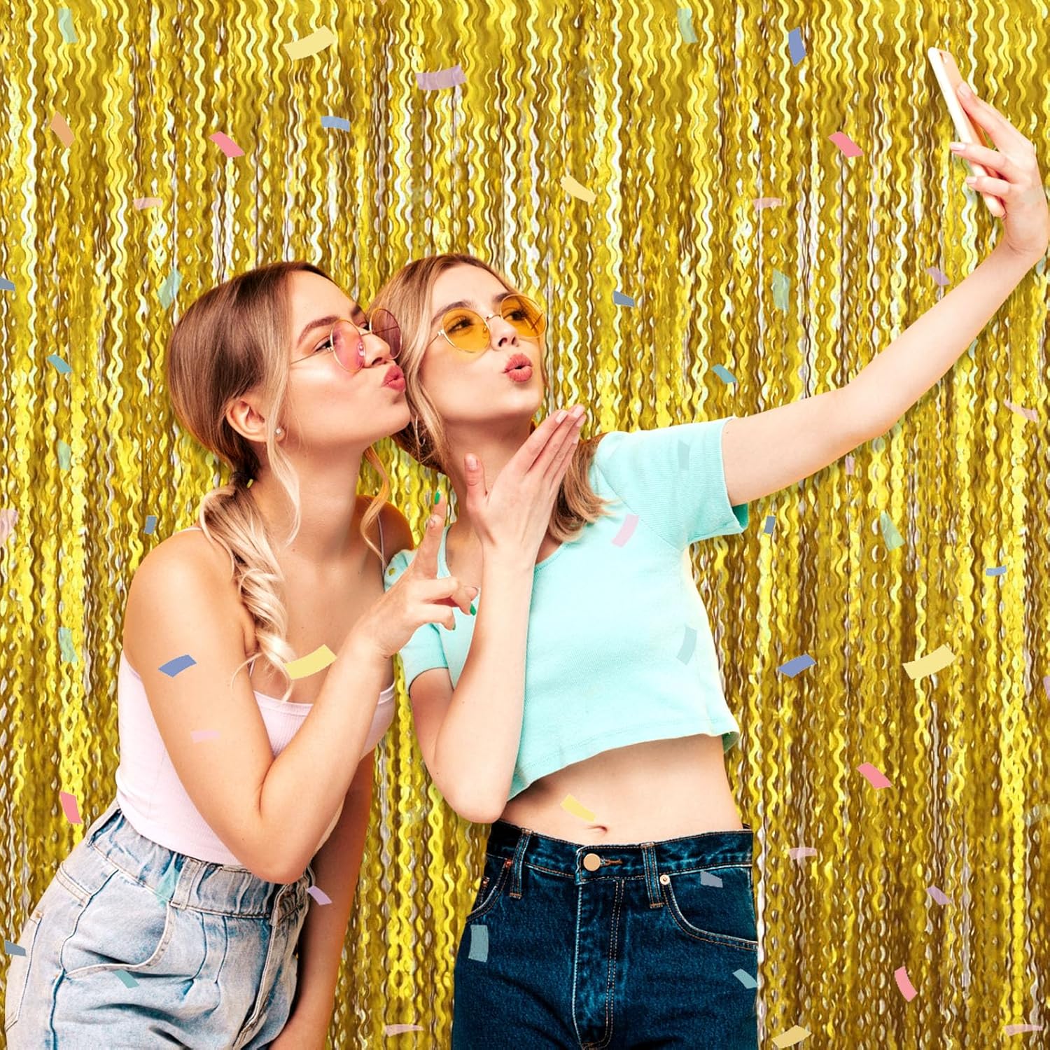 - Easy To Assemble | Strong Adhesive | Not Easy Fade : The foil fringe curtain backdrop party decorations come with double-sided adhesive tape, easy to use, just tear off the back of adhesive tape, then paste this streamers backdrop curtains on the top of wall, window, table, or as door fringe decoration.