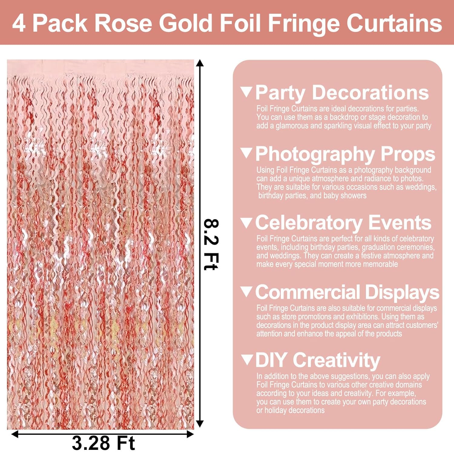 - Widely Applications:The foil fringe backdrop are wonderful finishing touch for any theme party such as birthday party, theme party, Halloween, Christmas, New Year Eve, bachelorette party, wedding, bridal shower, baby showers, graduations Etc.