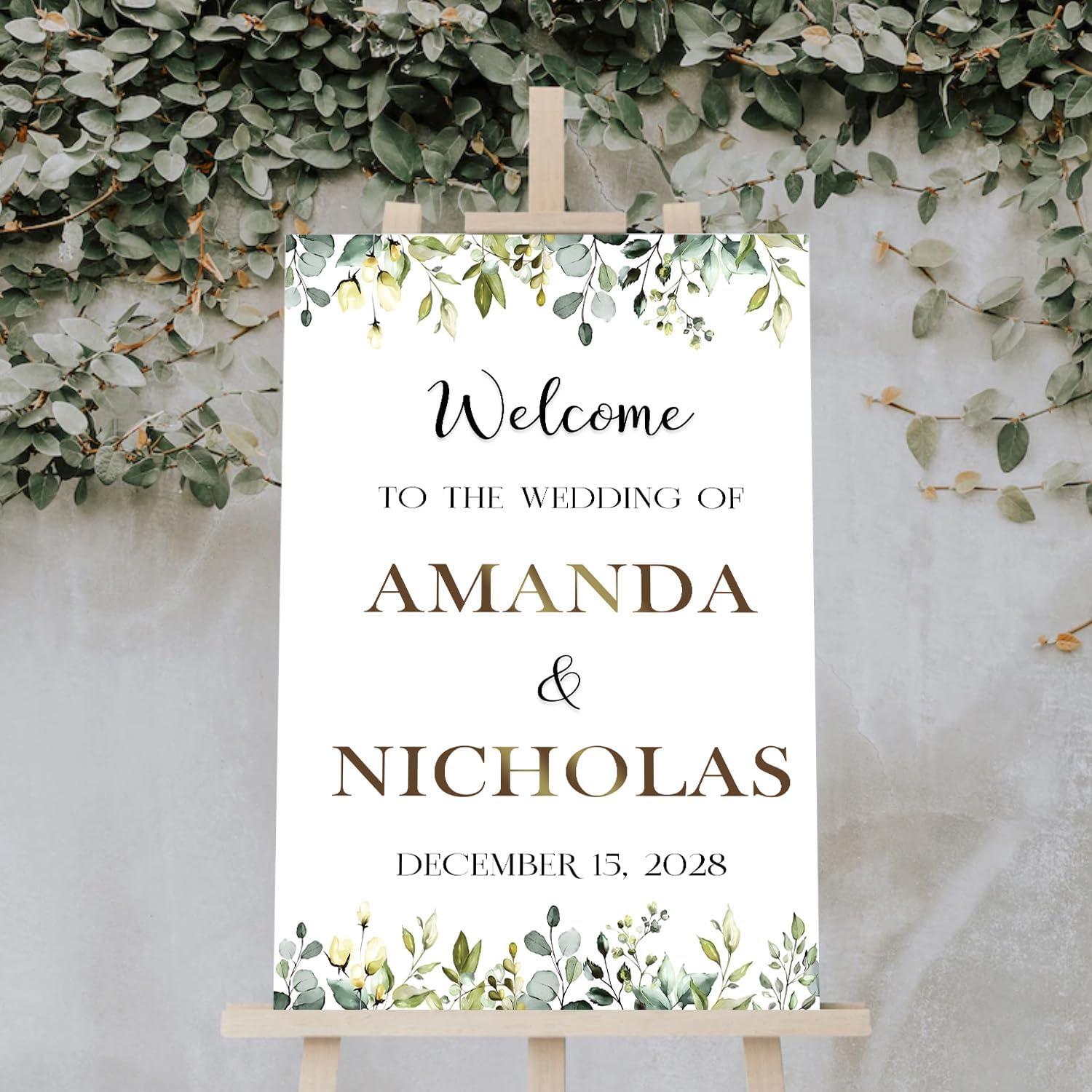 Welcome To Our Wedding Sign With Stand, Welcome Sign For Wedding Entrance, Greenery Floral Theme Wedding Sign Decoration, Reserved Signs For Wedding, Personalized Wedding Sign