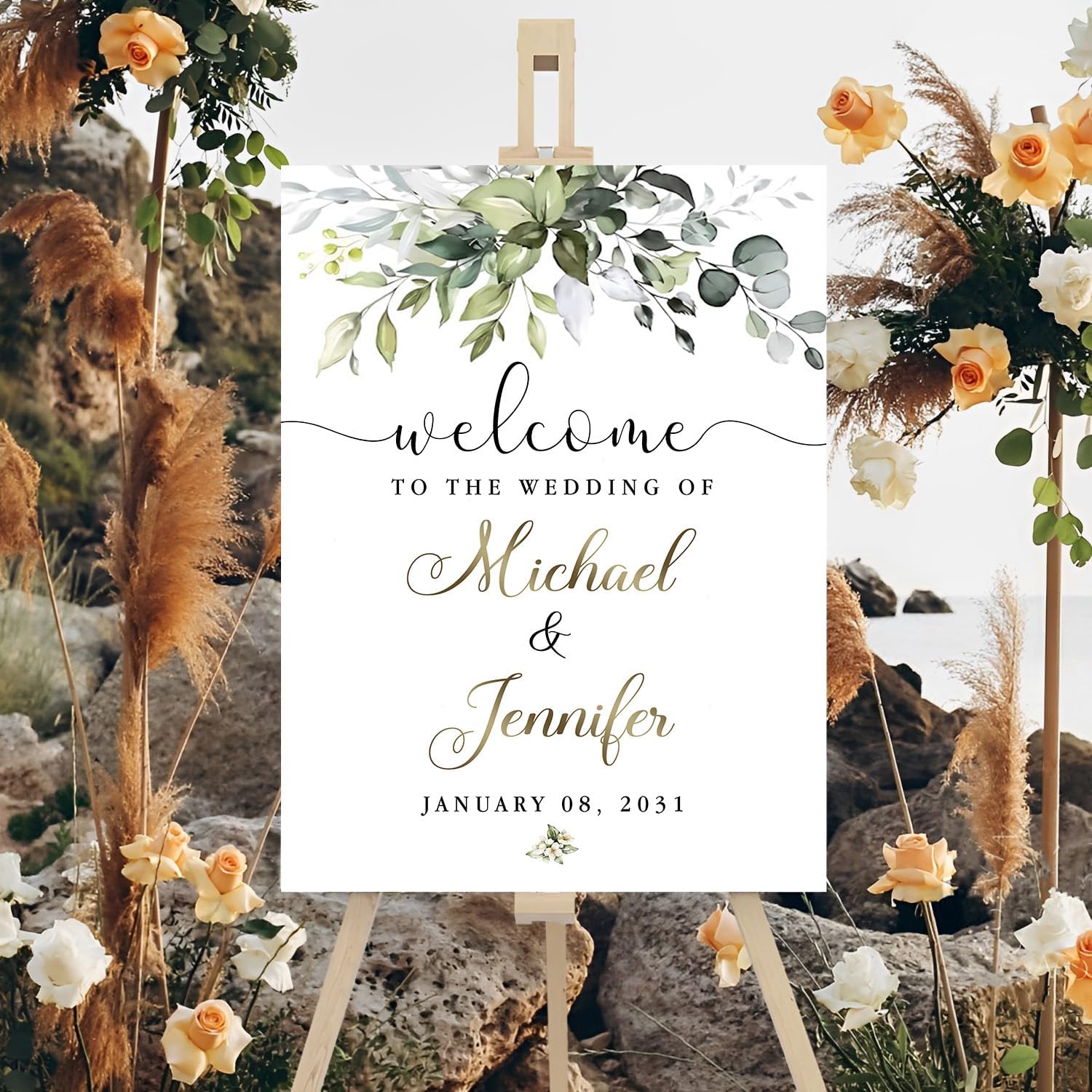 - [Customizable products]: Name and event details are editable. You can also incorporate the date and time of the wedding shower or other details in a simple but elegant design that says "Welcome," the bride-to-be's name, and other information.