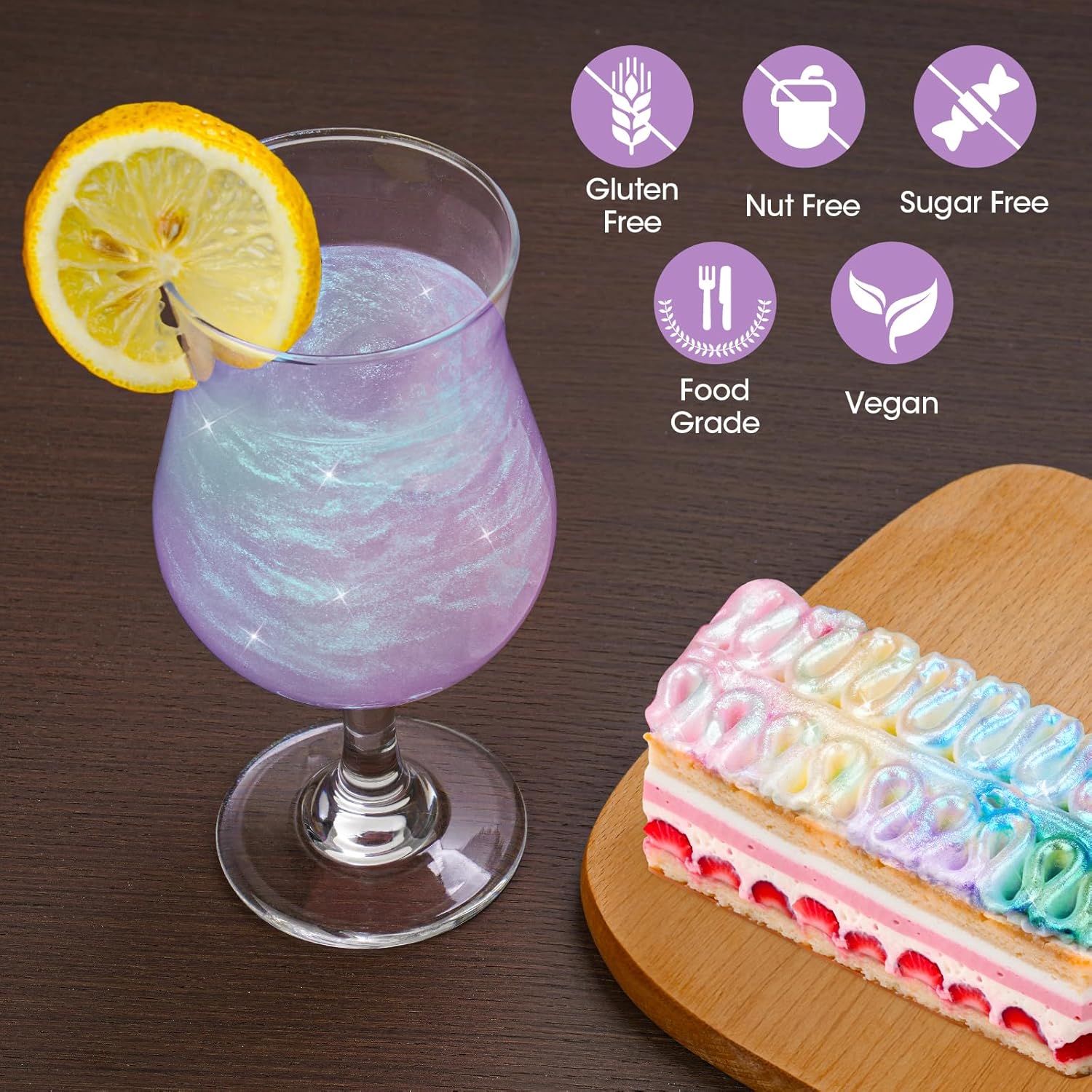 - ✔️【Vegan & Allergen-Free】Food-grade glitter uses only the highest quality vegan ingredients and does not contain common food allergens, including gluten, nuts or dairy products, so everyone can use and enjoy this product regardless of diet or food allergies. Unlike food contact glitter, these are 100% edible, so you don't need to worry about using them in your creations to make them sparkle for all.