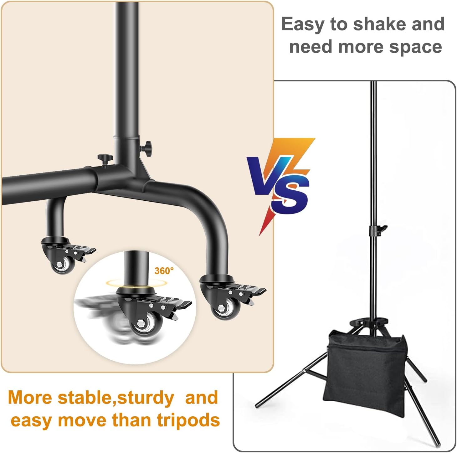- MORE STABLE WHEELS BASE - Our backdrop stand adds a leveling bar at the bottom with a sturdy wheels base. Compare with normal backdrop stand, it increases the stability of the stand. Therefore, it can carry heavy backgrounds and prevent shaking. The wheels have universal adjustment and shock absorption for easy mobility.