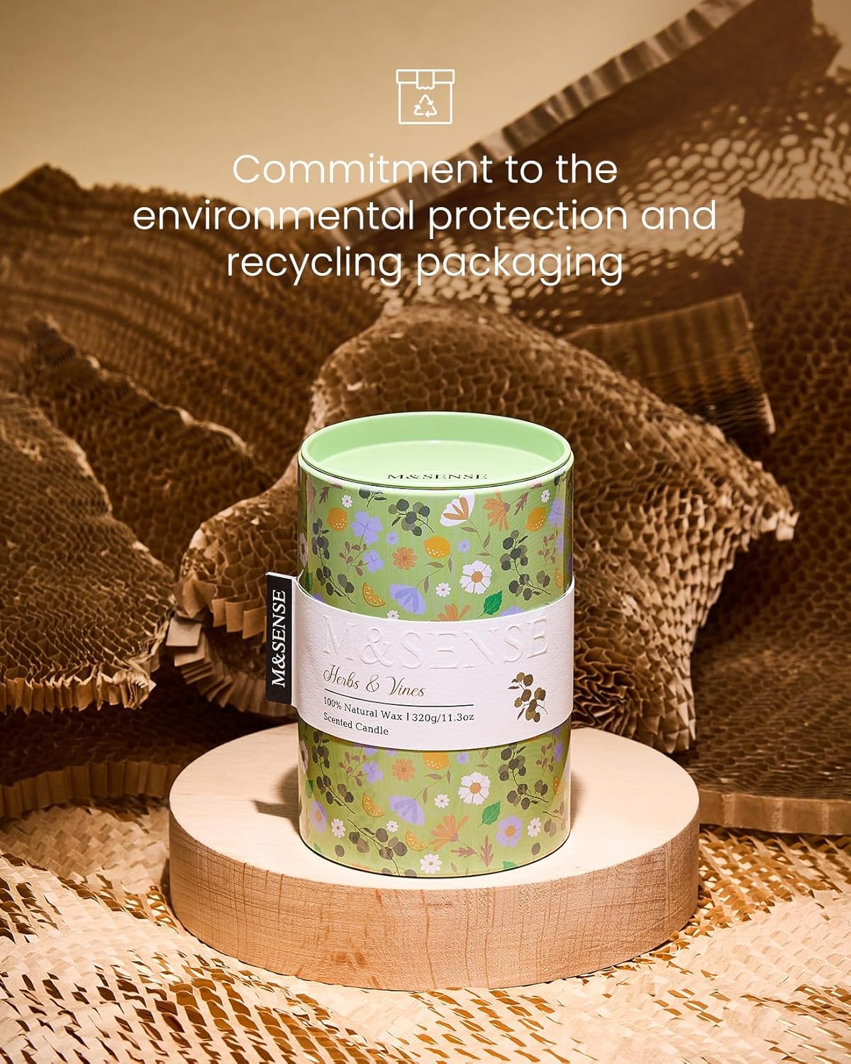 M&SENSE Herbs Vines Scented Candle, Medium Jar Candle 11.3oz Natural Soy Wax for Home Scented, Floral Candles Gift for Spring Holiday, Up to 70 Hours Burning Long-Lasting Fragrance