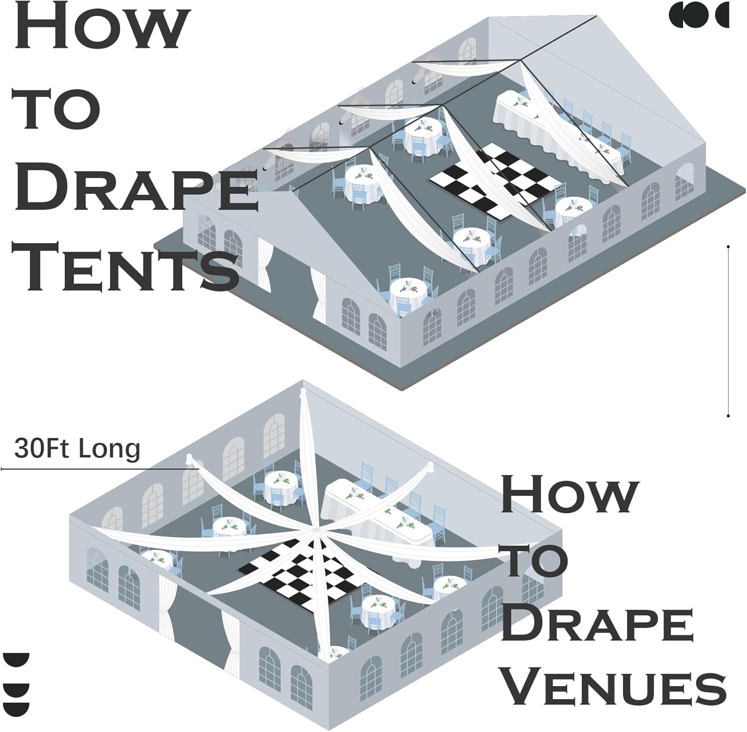 - 💐【Romantic Arch Drapes】Long wedding ceiling backdrop is crafted from high quality soft touch fabric.All edges are finished with firm and exquisite stitching, airy and lightweight.Wrinkle-free, easy draping or hanging straight, good vertical sense and durable.The sheer drapes helps to create a great eye catching detail in your wedding ceiling decoration, creating a romantic and attractive mood on your banquet decoration.