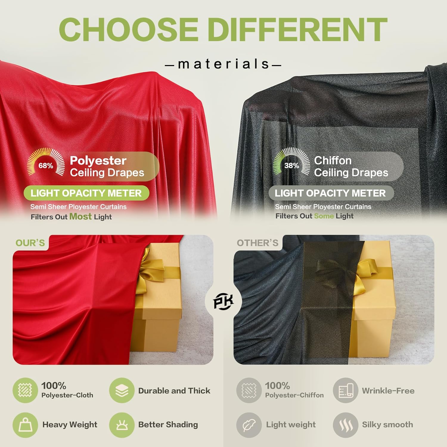 - Extra-Long Brilliance: This draping fabric, with its expansive 40ft Length, allows for grand and luxurious draping panels, making it an ideal choice for creating stunning backdrops, ceiling decor and tent draping that captivate attention.