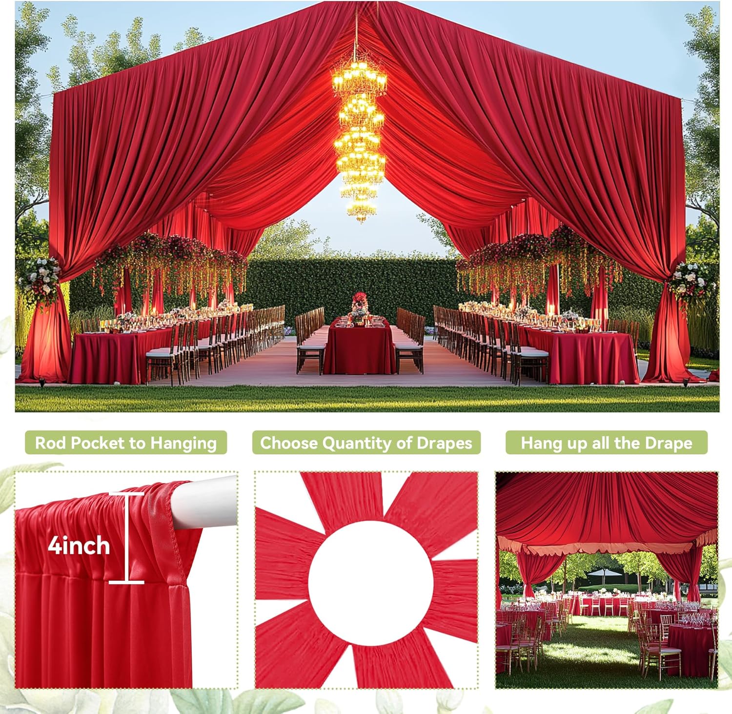 PartyVillage 50ftx40ft Red Ceiling Curtain for Wedding Parties – 10 Panels Wrinkle-Free 40 FT Long Tent Draping Curtains for Wedding, Birthday & Theme Parties, 40ft Height with Rod Pocket