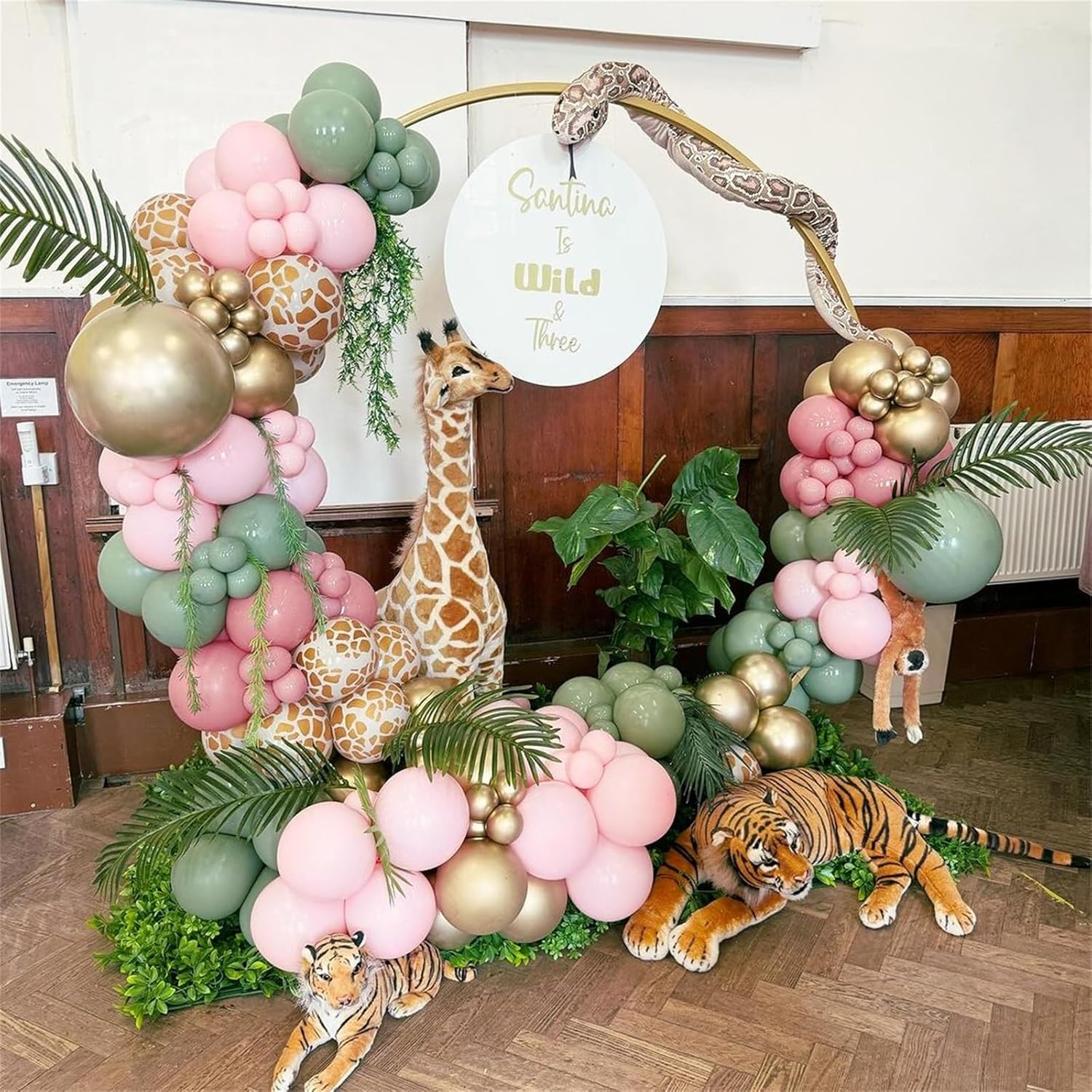 - High Quality Materials: This jungle safari baby shower party decorations is made of natural latex, and the pink and gold balloons are thick and durable, which means they will not break easily and last longer. In addition, all green pink ivory balloons have been strictly tested to ensure that they are not only durable but also safe for children.