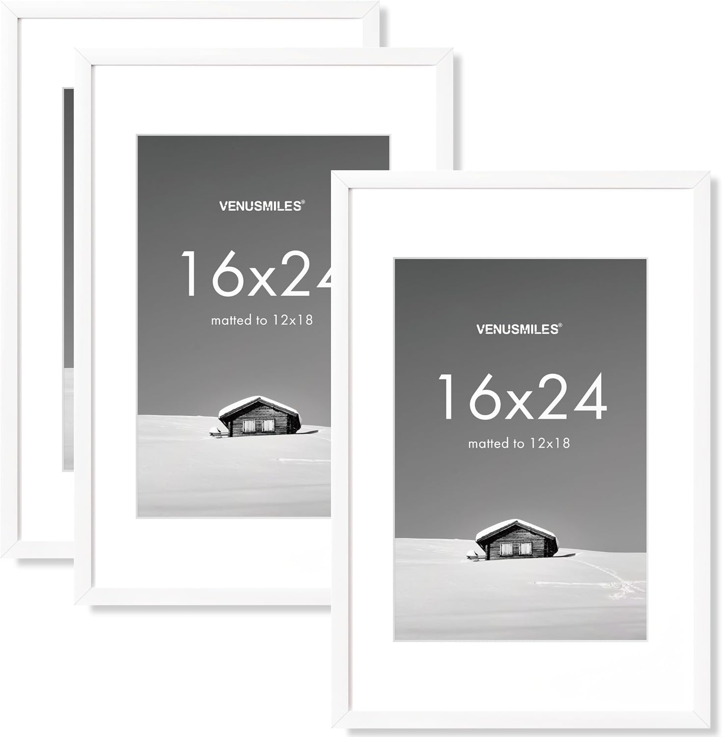 16x24 inch Picture Frame, 16x24 Photo Frames with 12x18 Removable Mat - High Definition Plexiglass - Vertical and Horizontal Display - Wall Hanging Poster Frame - White, 3 Pack