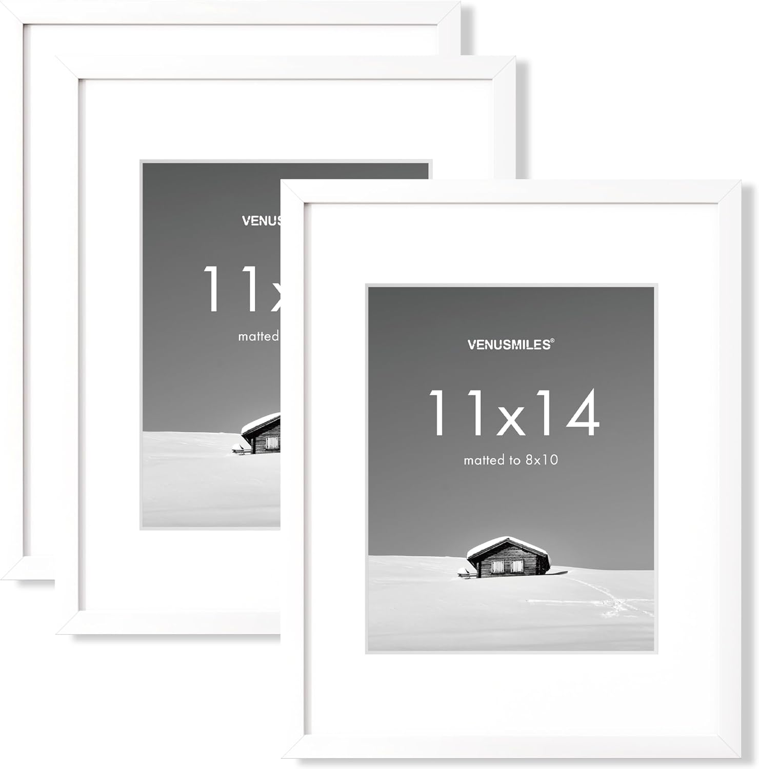 11x14 inch Picture Frame, 11x14 Photo Frames with 8x10 Removable Mat - High Definition Plexiglass - Vertical and Horizontal Display - Wall Hanging Frame - White, 3 Pack