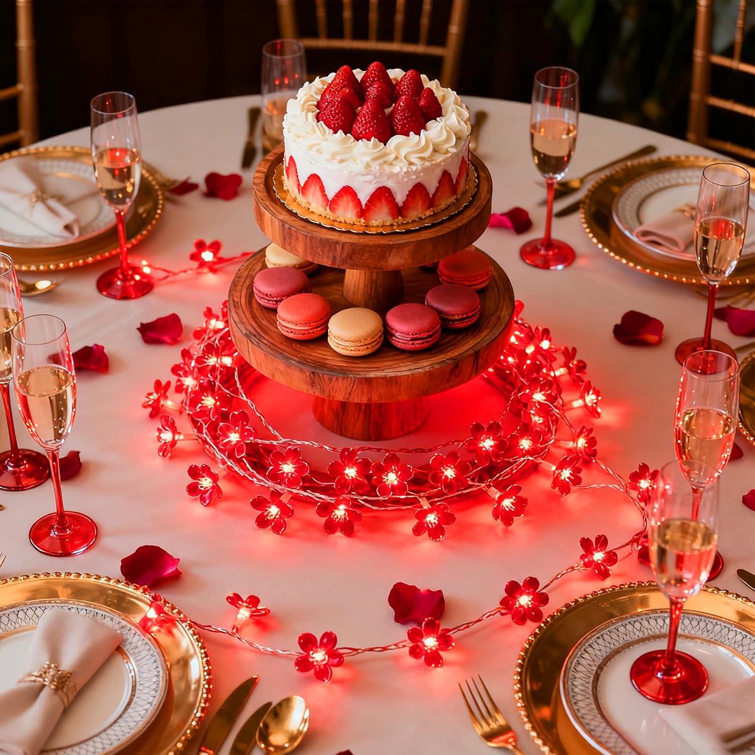 - [Plug in Flower String Lights] : Because the this string lights with (33ft) extra long clear wire, and we use Plug in design instead of battery operated, (without battery box), You can freely plug in this red flower lights in bedroom living room or dorm, it will create romantic theme.