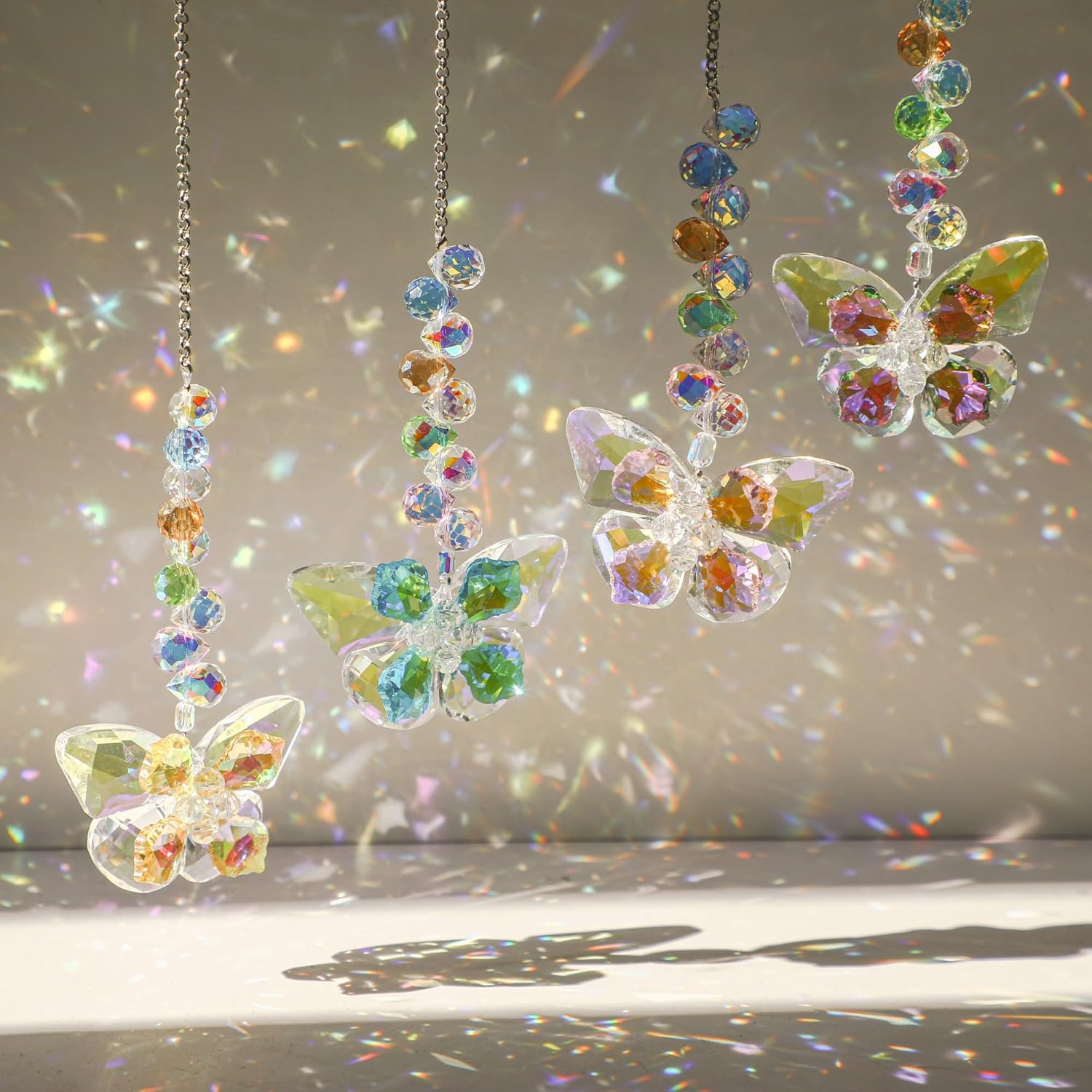 HDCRYSTALGIFTS 4pcs Crystal Butterfly Suncatchers for Window Hanging Ornaments, Rainbow Maker Sun Catchers Indoor Outdoor Patio Garden Decor Gifts