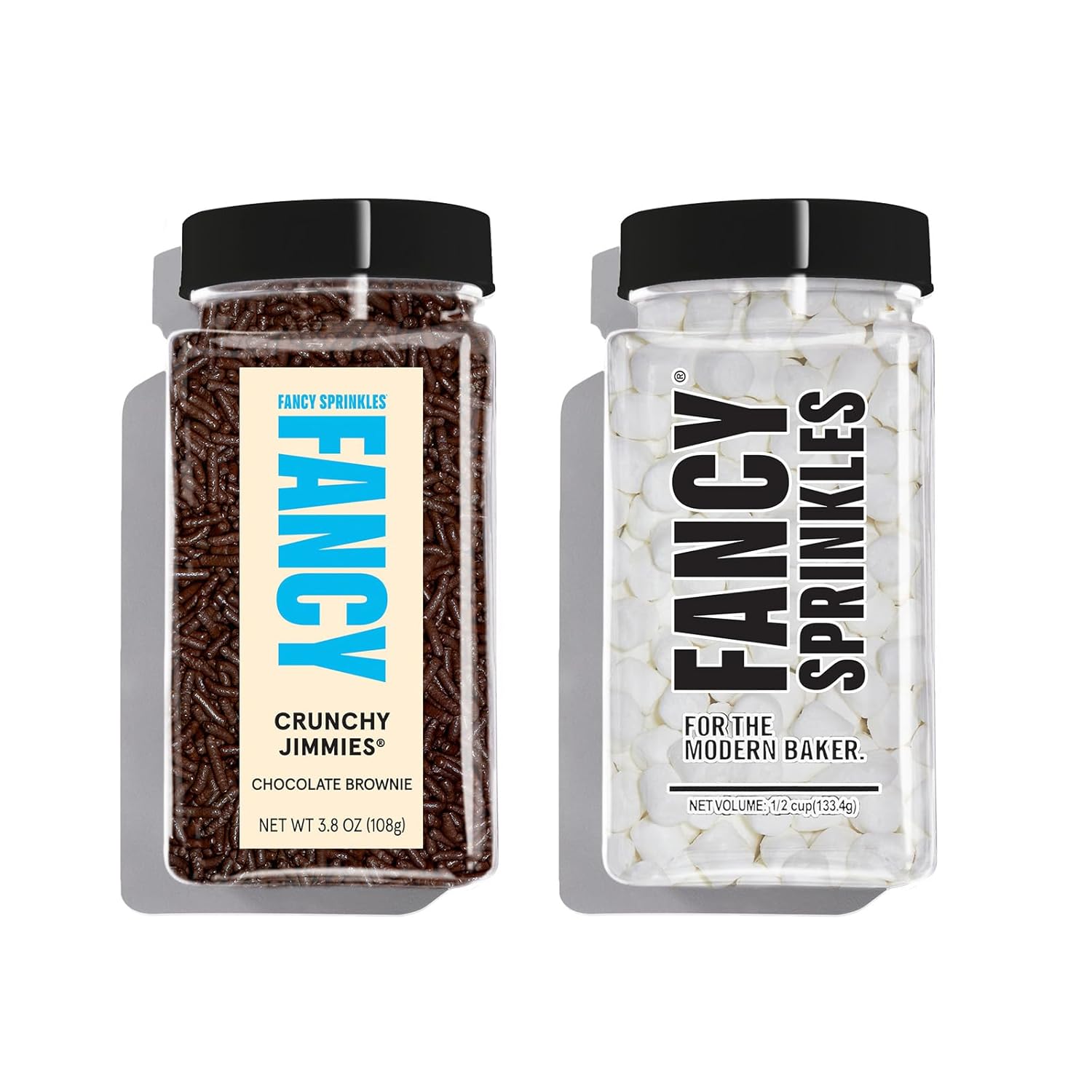 - FANCY SPRINKLES: Decorate your cookies, cakes, cupcakes, smores & hot chocolate with glamourous, one-of-a-kind, sweet, crispy jimmies and soft fluffy mini-marshmallows.
