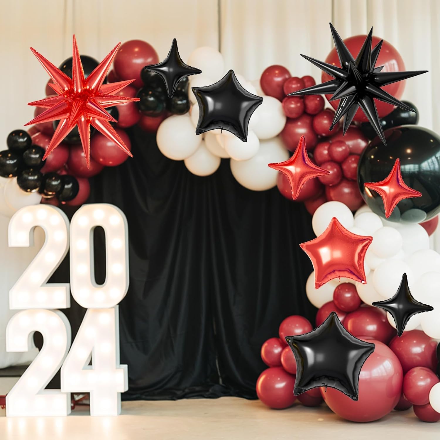 - 【Red Black Star Balloons】The package includes:6pcs 22-inch Star-Shape balloons(Red*3,Black*3), 4pcs 10-inch Four-Pointed Star balloons(Red*2,Black*2), 2pcs 18-inch Five-Pointed Star balloons(Red*1,Black*1), 4pcs 10-inch Five-Pointed Star Shape balloons(Red*2,Black*2),1 dispense and 1 straw. These foil star balloons are Great for birthdays, weddings, baby showers, and engagement parties