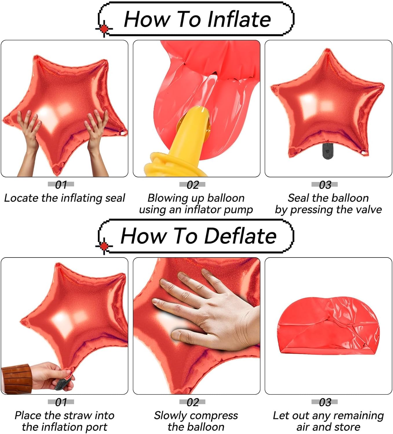- 【Effortless Setup】Inflate with helium or air using a pump and secure easily for polished decor. These Star Foil balloons are simple to assemble and reusable for multiple events, making decorating quick and effortless.