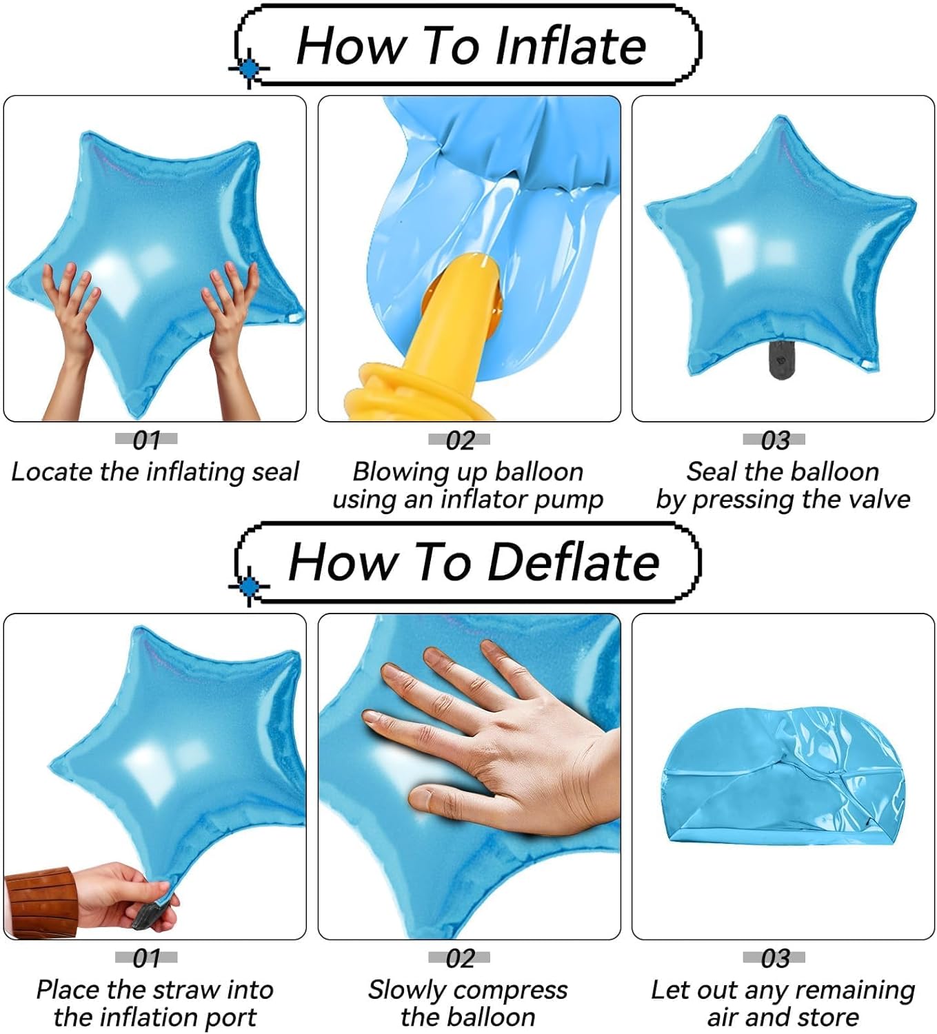 - 【Effortless Setup】Inflate with helium or air using a pump and secure easily for polished decor. These Star Foil balloons are simple to assemble and reusable for multiple events, making decorating quick and effortless.