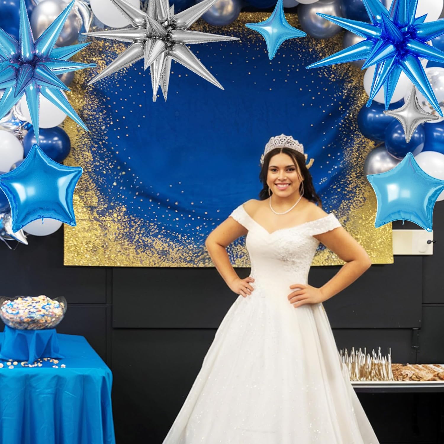 - 【Blue Silver Star Balloons】The package includes:6pcs 22-inch Star-Shape balloons(Light Blue*2,Blue*2,Silver*2), 4pcs 10-inch Four-Pointed Star balloons(Light Blue*2,Blue*1,Silver*1), 3pcs 18-inch Five-Pointed Star balloons(Light Blue*1,Blue*1,Silver*1), 3pcs 10-inch Five-Pointed Star Shape balloons(Light Blue*1,Blue*1,Silver*1),1 dispense and 1 straw. These foil star balloons are Great for birthdays, weddings, baby showers, and engagement parties
