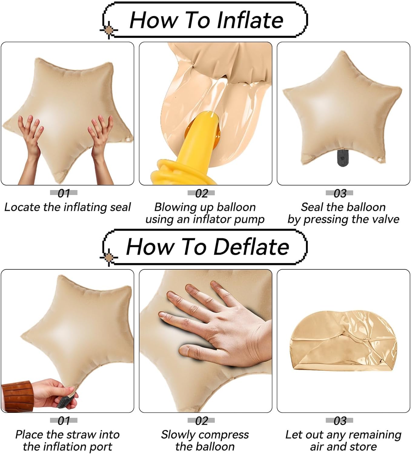 - 【Cream Caramel Brown Star Balloons】The package includes:6pcs 22-inch Star-Shape balloons(Cream*2,Caramel*2,Brown*2), 3pcs 18-inch Five-Pointed Star balloons(Cream*1,Caramel*1,Brown*1), 7pcs 10-inch Five-Pointed Star Shape balloons(Cream*3,Caramel*2,Brown*2),1 dispense and 1 straw. These foil star balloons are Great for birthdays, weddings, baby showers, and engagement parties