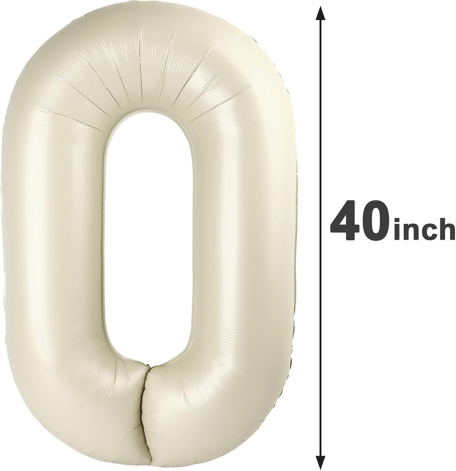 Cream White 0 Number Balloon 40 Inch, 0 Decorations for 10 20 30 40 50 60 70 80 90 100Birthday, Foil Giant Birthday Graduations Anniversary Party Balloons