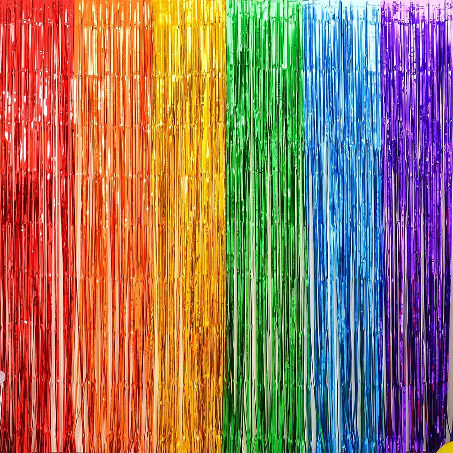 10 Pack Rainbow Backdrop Curtain 3.2ft x 8.2ft Metallic Tinsel Foil Fringe Curtains Photo Booth Background for Birthday Party Decoration Baby Shower Engagement Wedding Christmas Decoration (Rainbow)