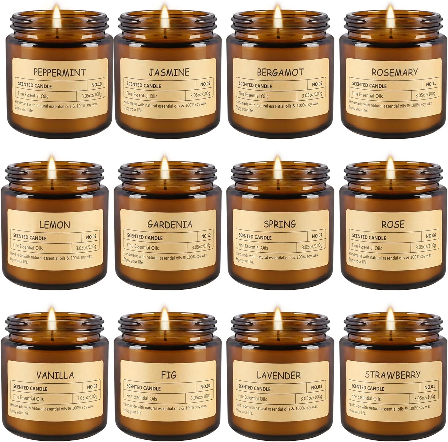 12Pack Scented Candle Set - Aromatherapy Candle Gift Set – Long Lasting Jar Candles for Men| Women, Ideal for Birthdays, Mother's Day Thanksgiving Gifts