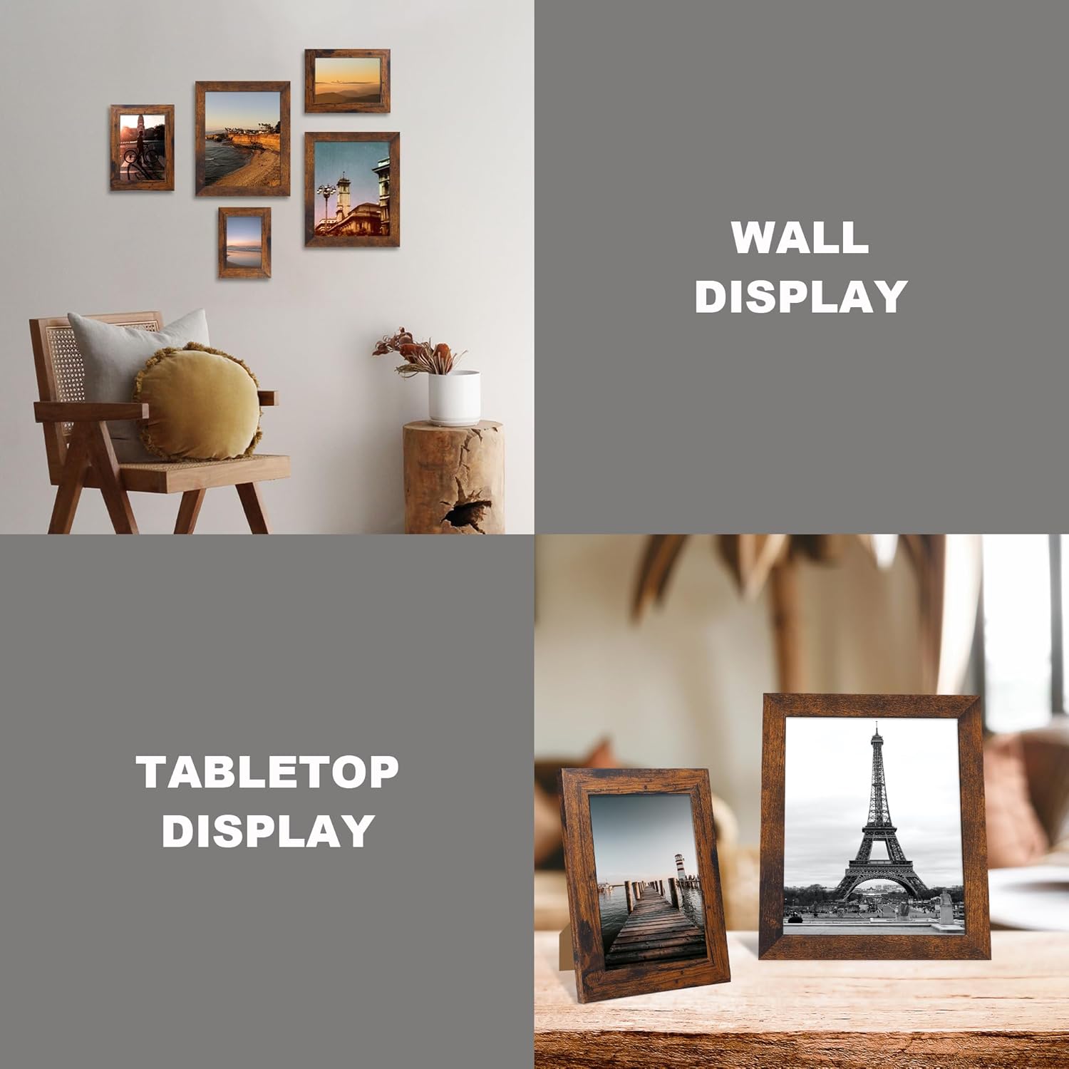 - A Variety of Display Methods: Our picture frames could be hang vertically or horizontally, placed on a desk by their easel-back, or hang on the wall with the mounted hanging hanger.
