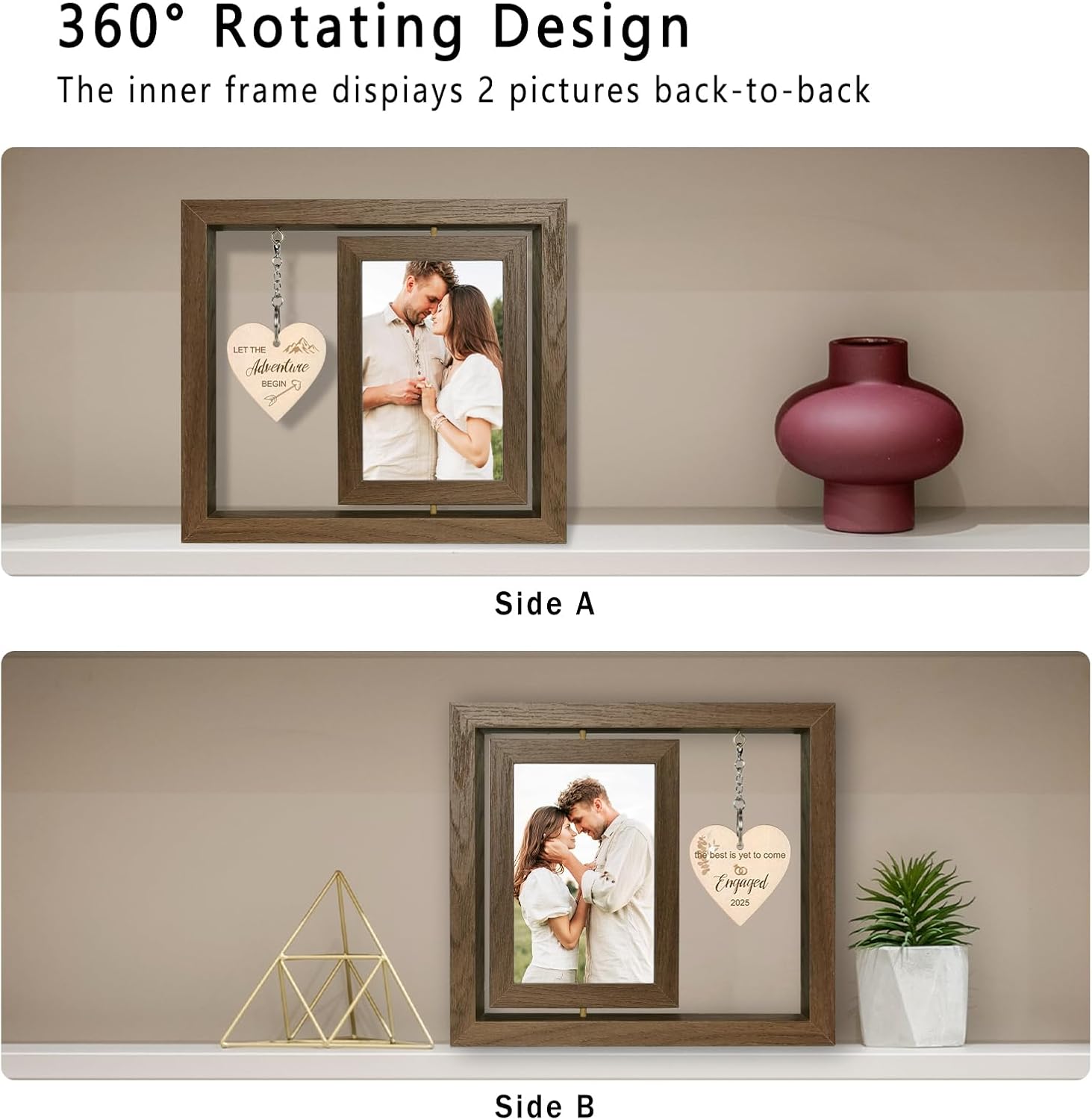 - Perfect Engagement Gift for Couples – Celebrate love with this elegant engagement picture frame. Ideal for engagement gifts for couples or gifts for newly engaged couples. Showcase cherished moments with a rotating double-sided design
