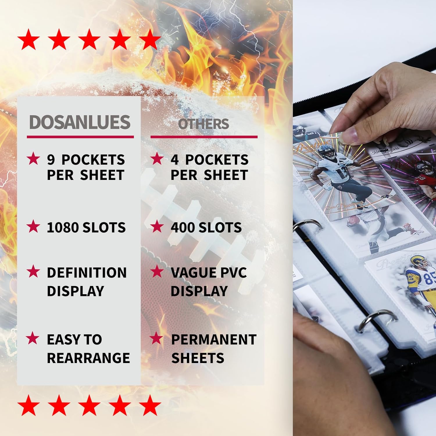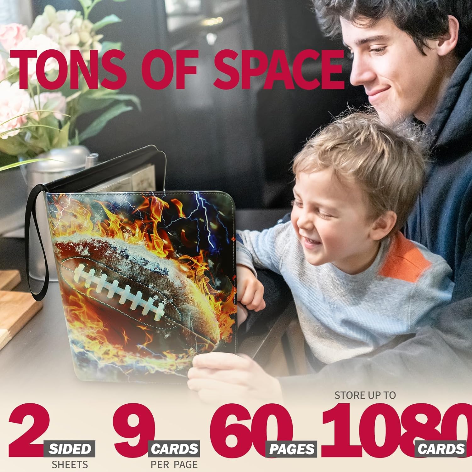 1080 Pockets Football Card Binder 9 Pocket, Trading Card Binder with 60 Page Removable Sleeves, Zipper Card Book Album Holder[PROTECTIVE][PLEASANT TOUCH SURFACE]