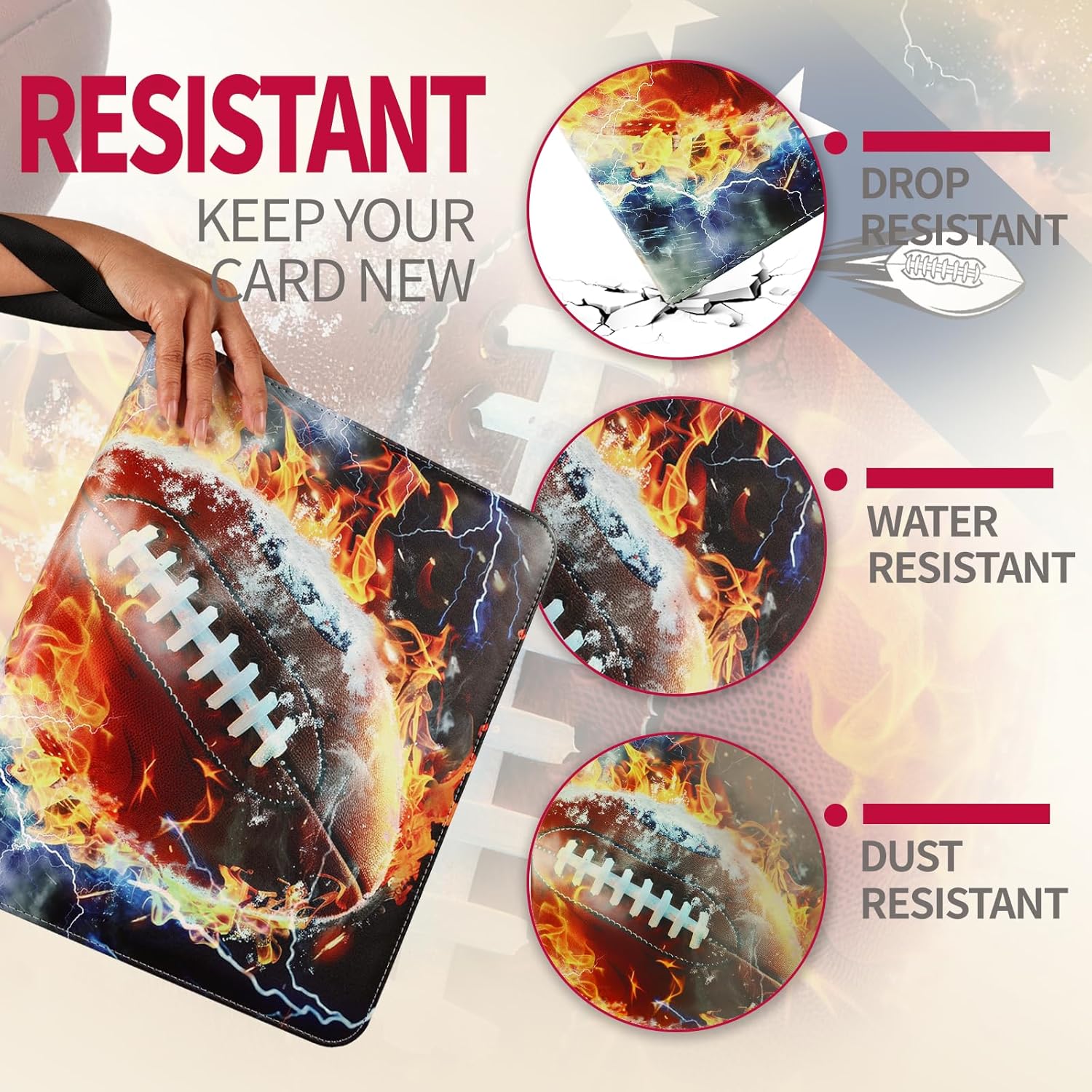 - [DURABILITY] The binder's interior is made from sturdy& water-resistant materials and reinforced with tight stitching. It protects your cards from damage caused by accidental drops, while the zipper closure ensures that your cards stay securely inside