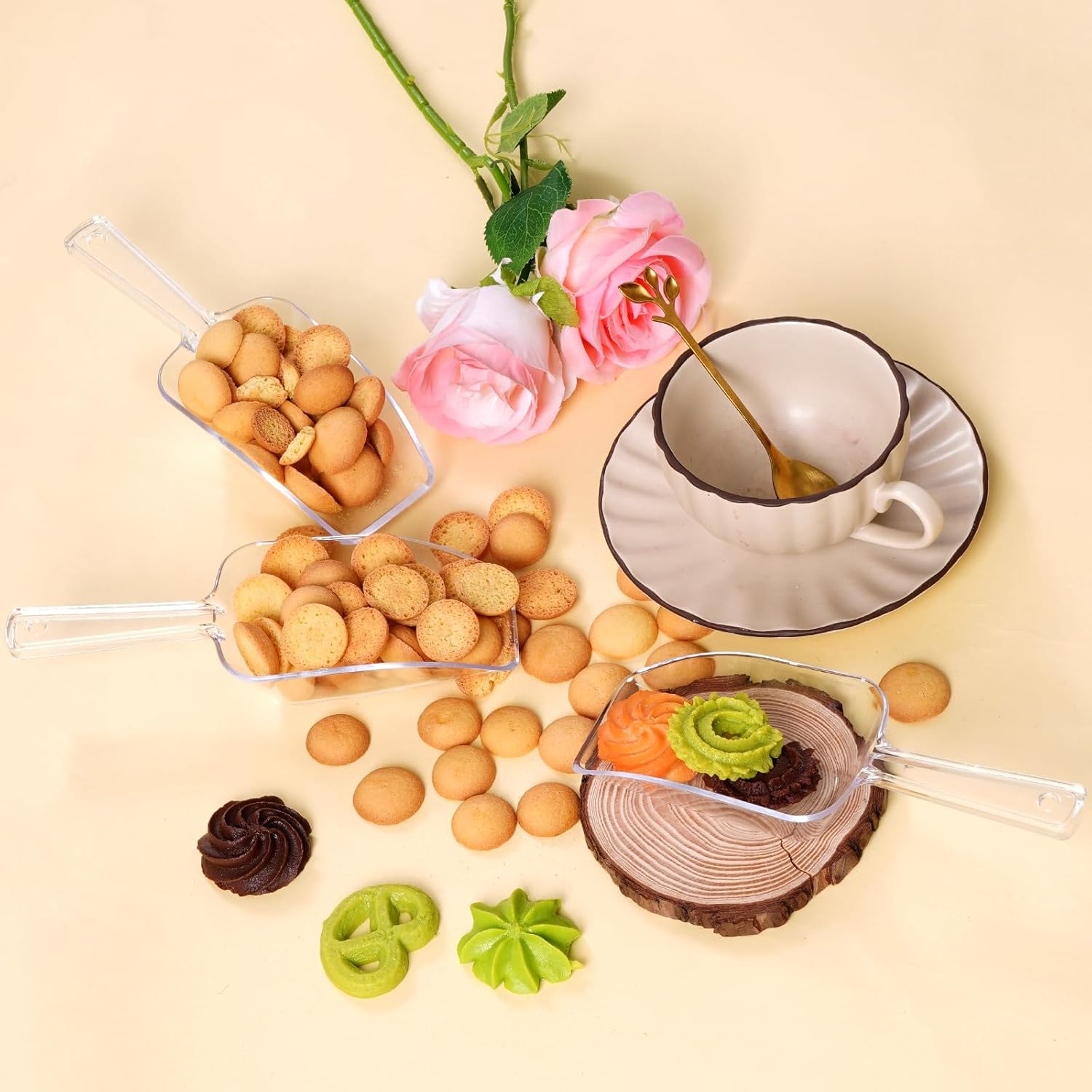 - Elegant for Events and Bars: These clear plastic scoops add a touch of elegance to your party, wedding, or bar setup. They are perfect for popcorn bars, candy stations, and serving various snacks