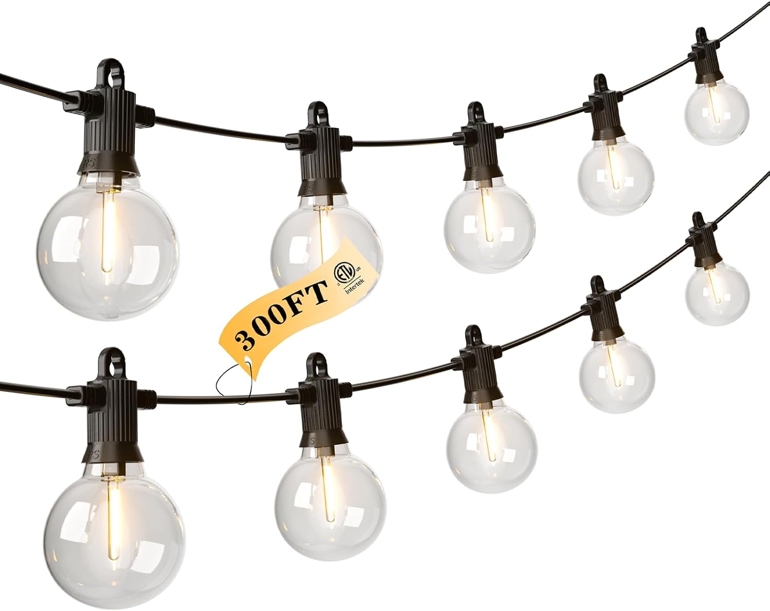 Kawaya 300FT Outdoor String Lights - LED Waterproof Patio Light for Outside with 146+4 G40 Globe Blubs - Shatterproof Hanging Lights for Porch Bistro Backyard Gazebo Balcony Cafe